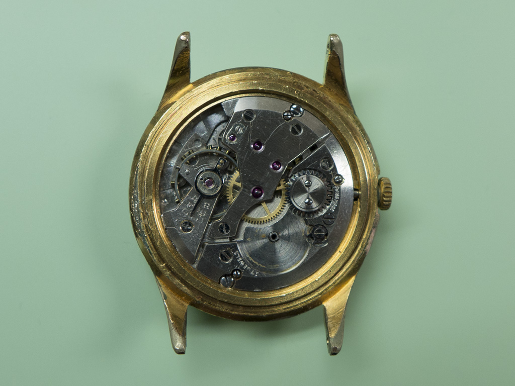 This lovely 1950’s Rotary triple calendar moonphase came in with the all too common problem of a dislodged yoke.
