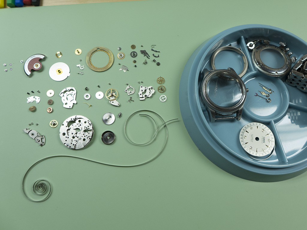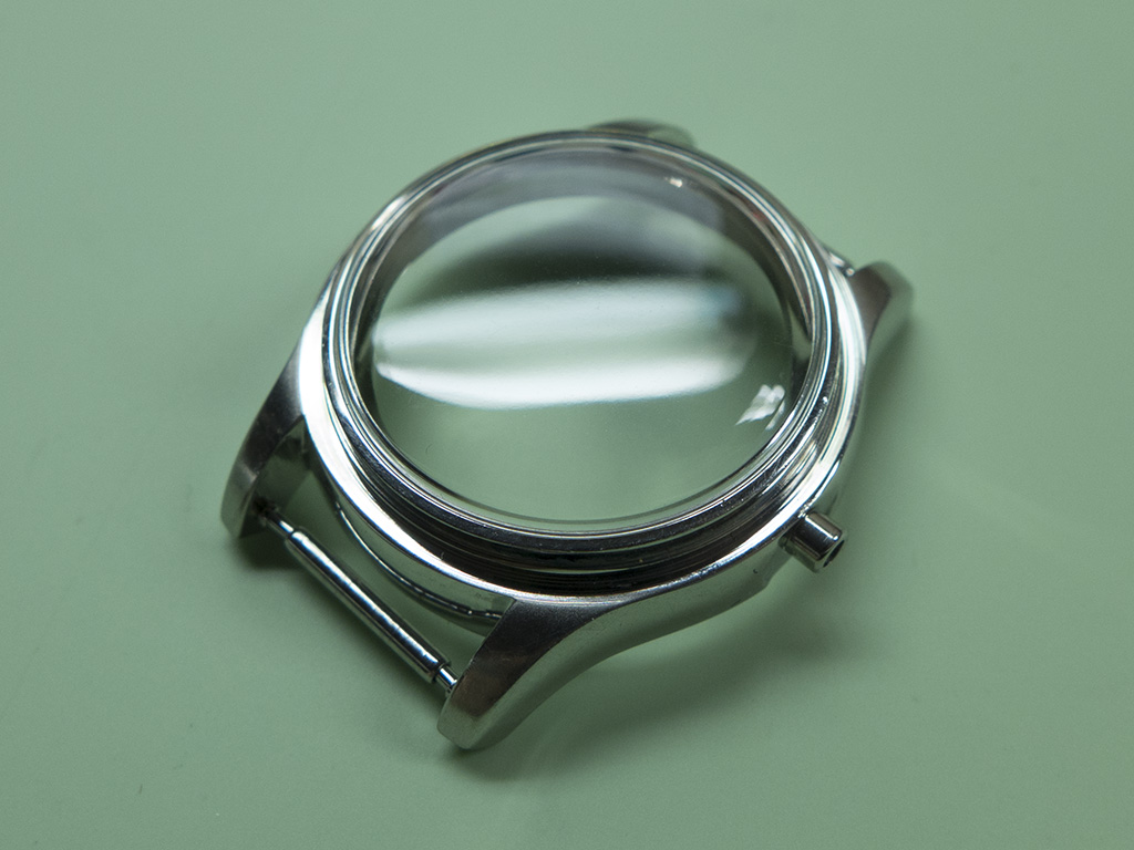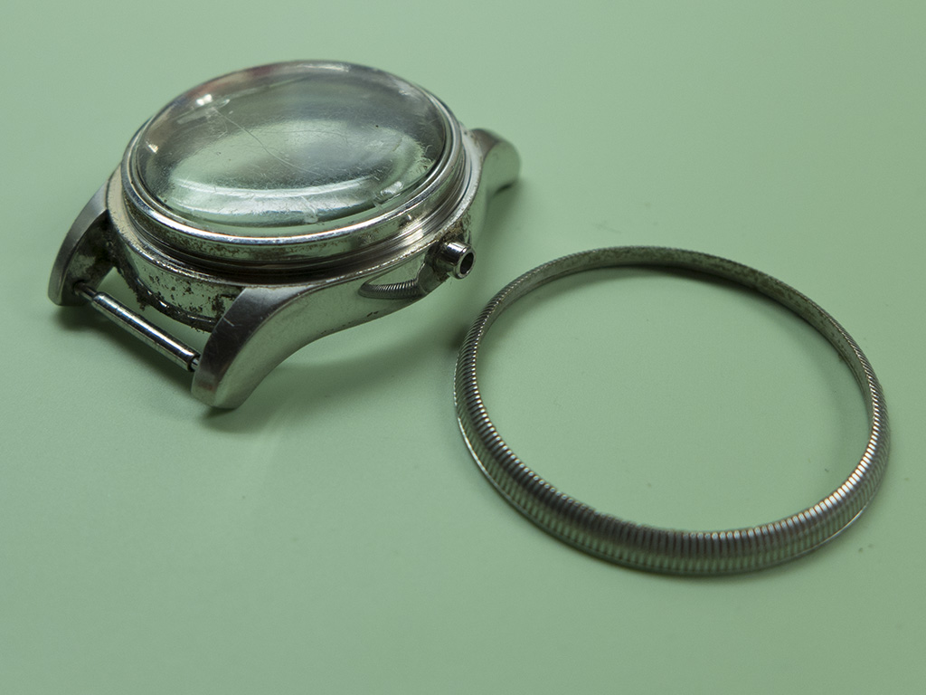 Which means I can now turn my attention to the crystal, here the “onion” bezel is off ready for the crystals removal. All the case components are then ultrasonically cleaned.