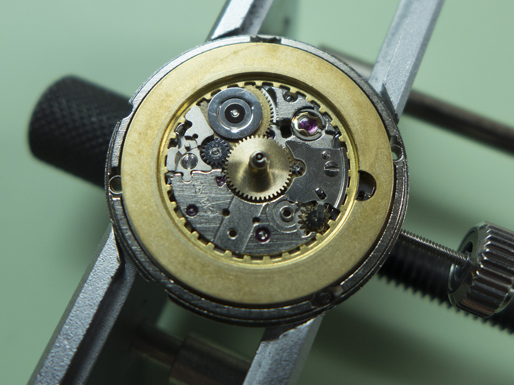 The autowind bridge reassembled and fitted with the movement ticking away nicely.