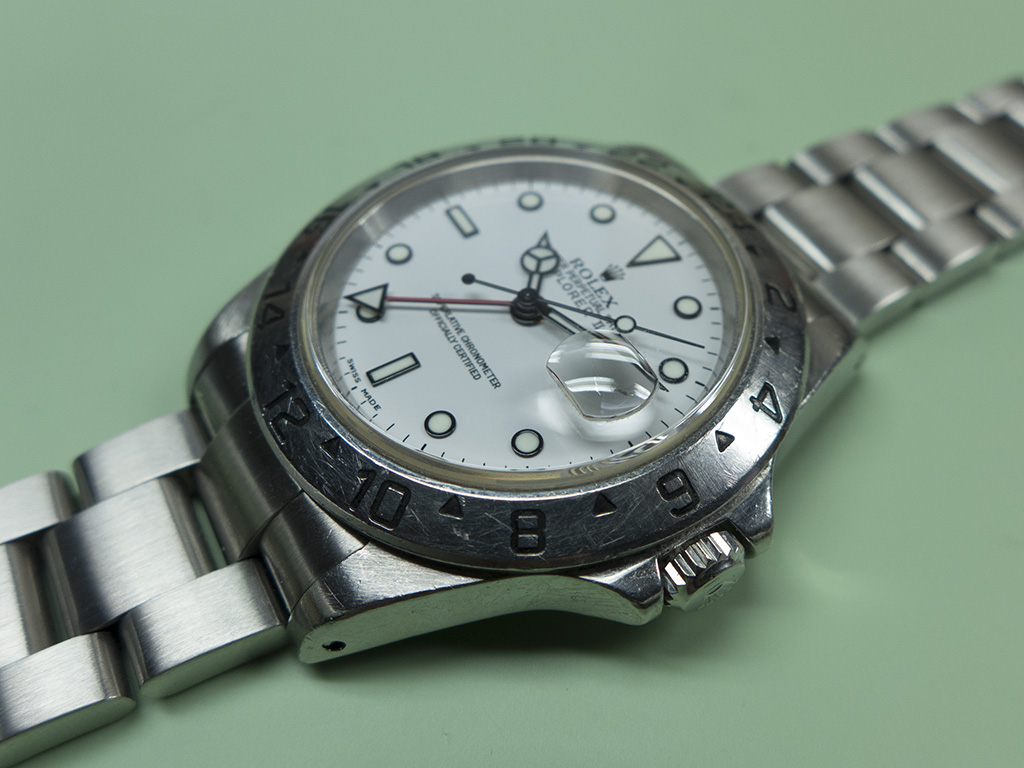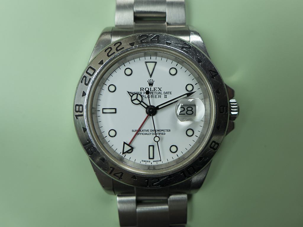 A friend of mine sent me this Rolex Explorer II for a check up which has been his daily wearer for the last 10 years or so. He works in engineering in a brewery and there’s been no pampering of this example – it genuinely leads the life of a tool watch.