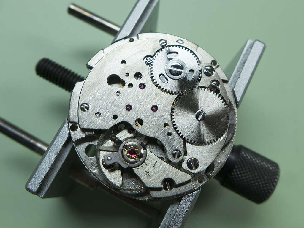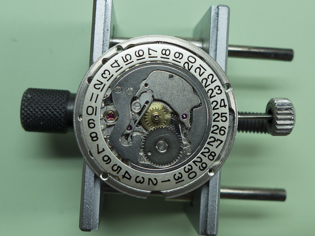 The watch was then reassembled, lubricating as I went. Here the motion work was installed ready to spring into life.