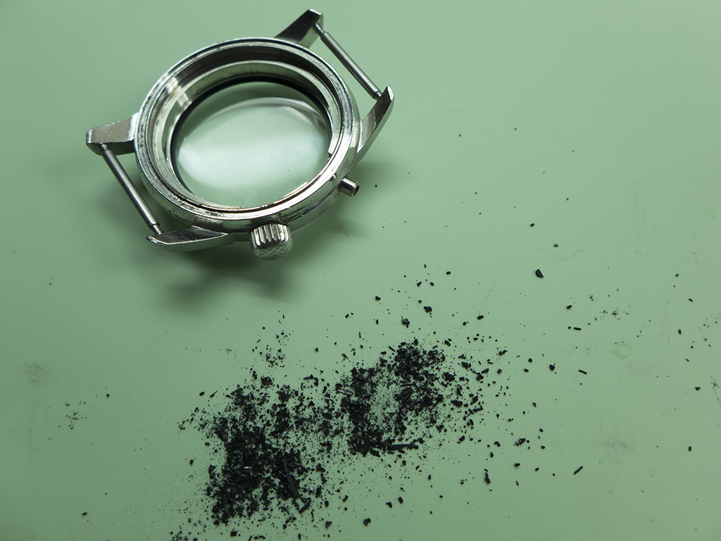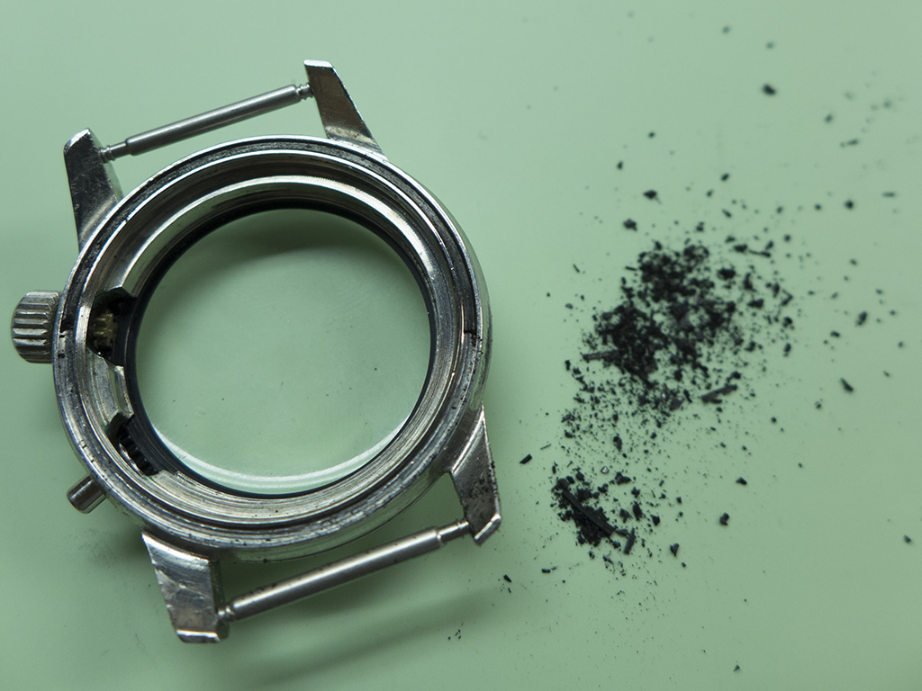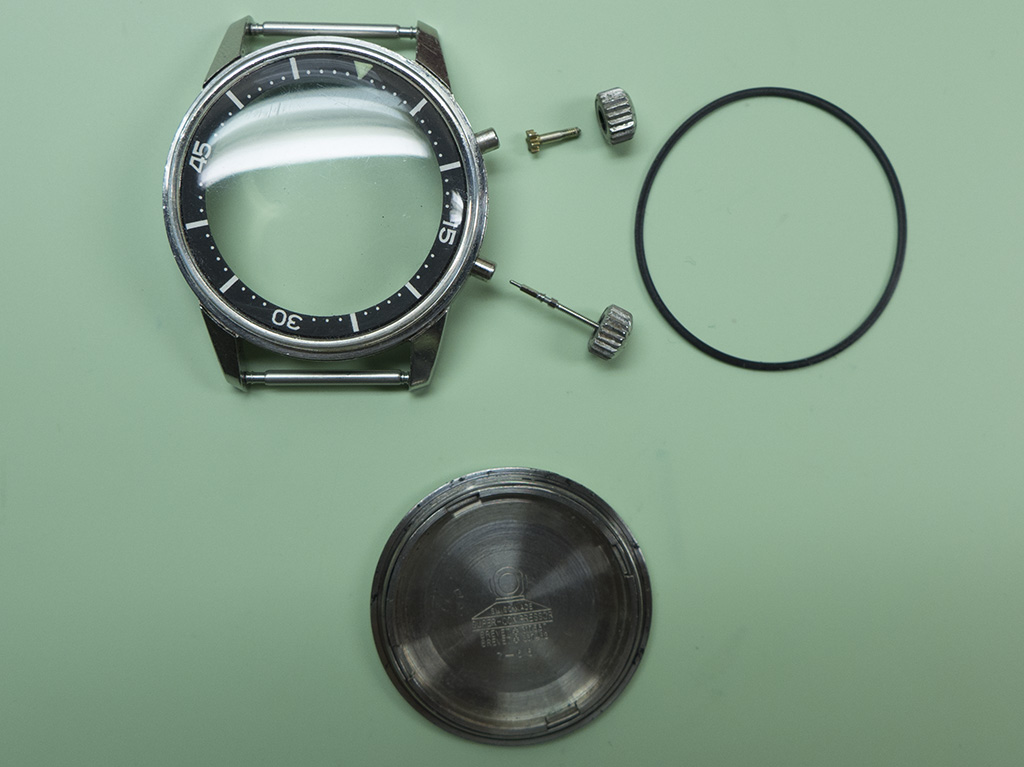 My attention then turned to the case to try and see if it could be made water resistant again. The problem with vintage super compressor cases is the crowns are very difficult to source nowadays and if the seals have degraded over the intervening forty plus years you’re a bit stuck. It didn’t look too promising for the crown seals if the caseback seal was anything to go by, when I attempted its removal it just turned to dust!