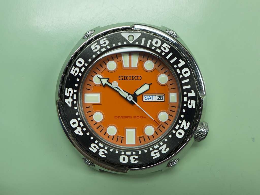 The Seiko SHC059P is more commonly known by it’s sawtooth nickname, so called because the bezels edge resembles a circular saw blade. I recently had one come in just needing a new battery so I removed the back to fit a new one. The existing battery was quite dusty with a big ball of fluff hanging off it, it must have been found down the back of the sofa and fitted!