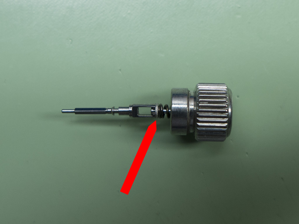 With the crown reassembled you can see where the washer fits, this securely holds the female part of the stem together.