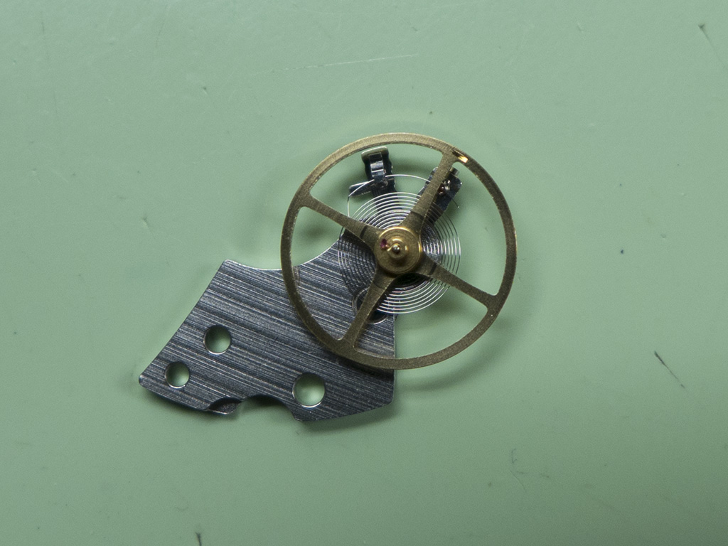 From the description of the problem I was hoping that after the watch was dropped the reason the movement had stopped would be due to the hands moving together on the horizontal plane and becoming locked together. Of course this wasn’t the case so more investigative work was in order! With the movement turned over the next job was to remove the balance and see if there’s any damage to the impulse jewel and pallet stones that could have cause the balance to lock.