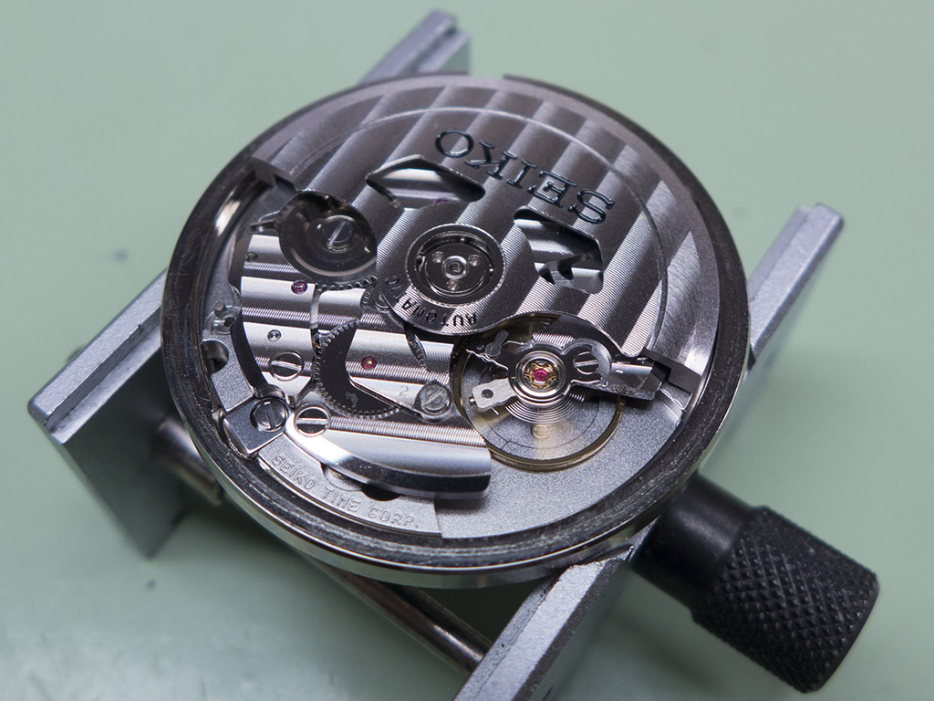 Going back to the MM300 in question, this one came in because it had been dropped and had stopped running. The hands couldn’t be adjusted manually either so as you can see it was stuck at four minutes to eleven. I think it must have been dropped onto a wooden floor as I couldn’t see any sign of case damage whatsover!
