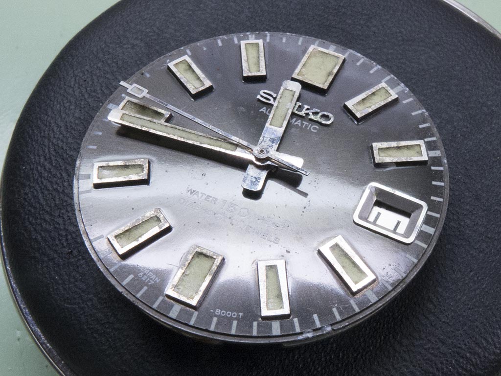 The hands picked clean of corrosion, again just in need of a polish. The hands are the worst to clean as the lume is only held at the edges and 50 year old lume doesn’t take much persuasion to crack and fall out!