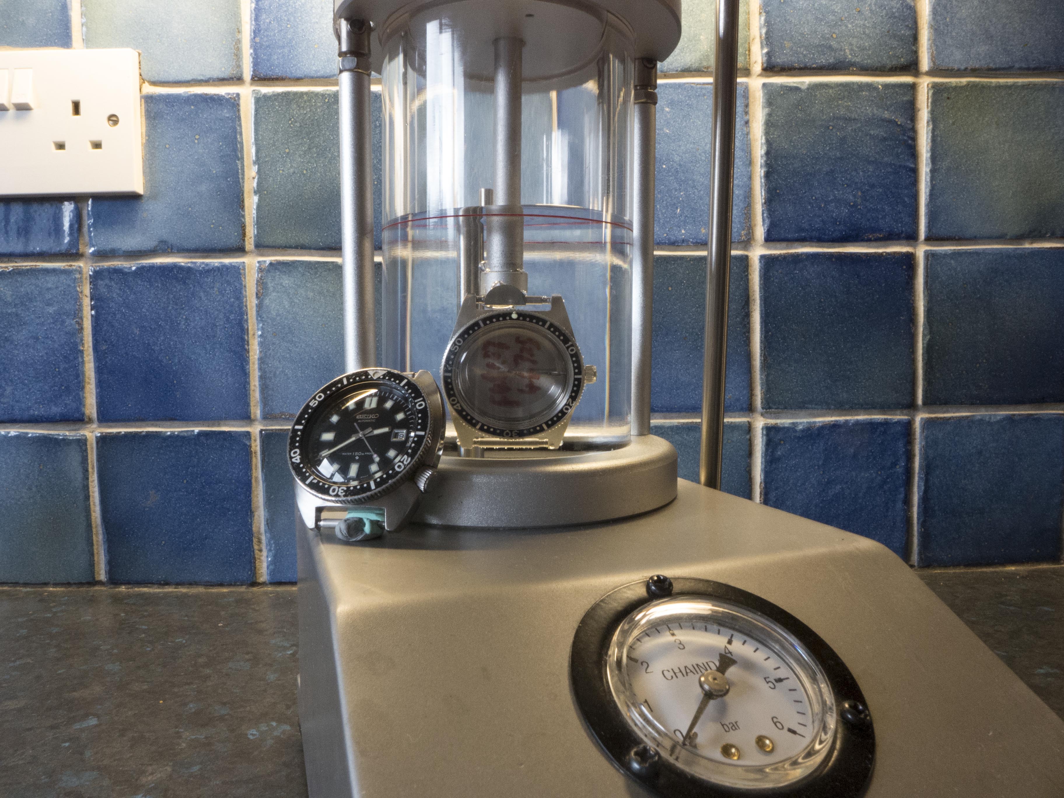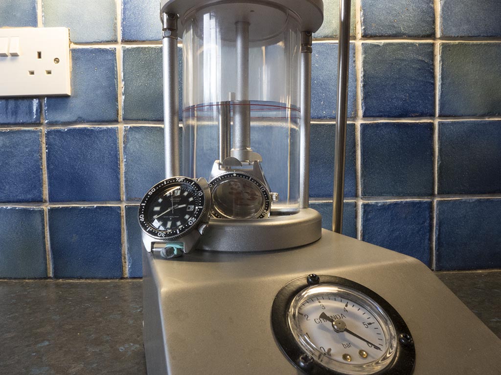 When I replaced the crown the seal still felt very flexible which was very unusual as these have normally hardened over time, in fact I have had NOS crowns where the seals have become so hard that you couldn’t fit them over the tube. I applied some silicone grease to the crown and thought I may as well pressure test it and see how good the seal actually is. In the chamber it went and the pressure was pumped up.