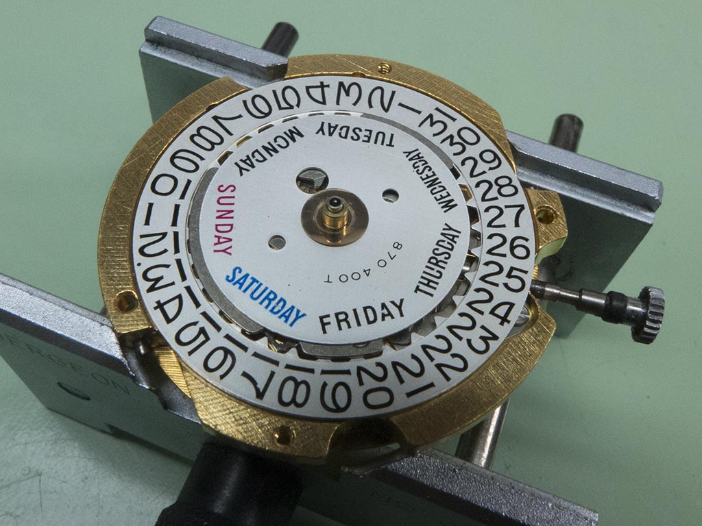 Underneath the dial lies the day/date rings, Japanese domestic market versions of these watches have full kanji script days printed which look very cool.