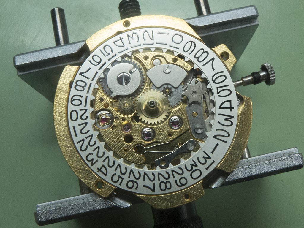 Also on this one the date corrector was very worn. This tends to happen (but not always) as the teeth of the clutch act on the gear on the bottom of the corrector. Again a NOS one was used for the rebuild.