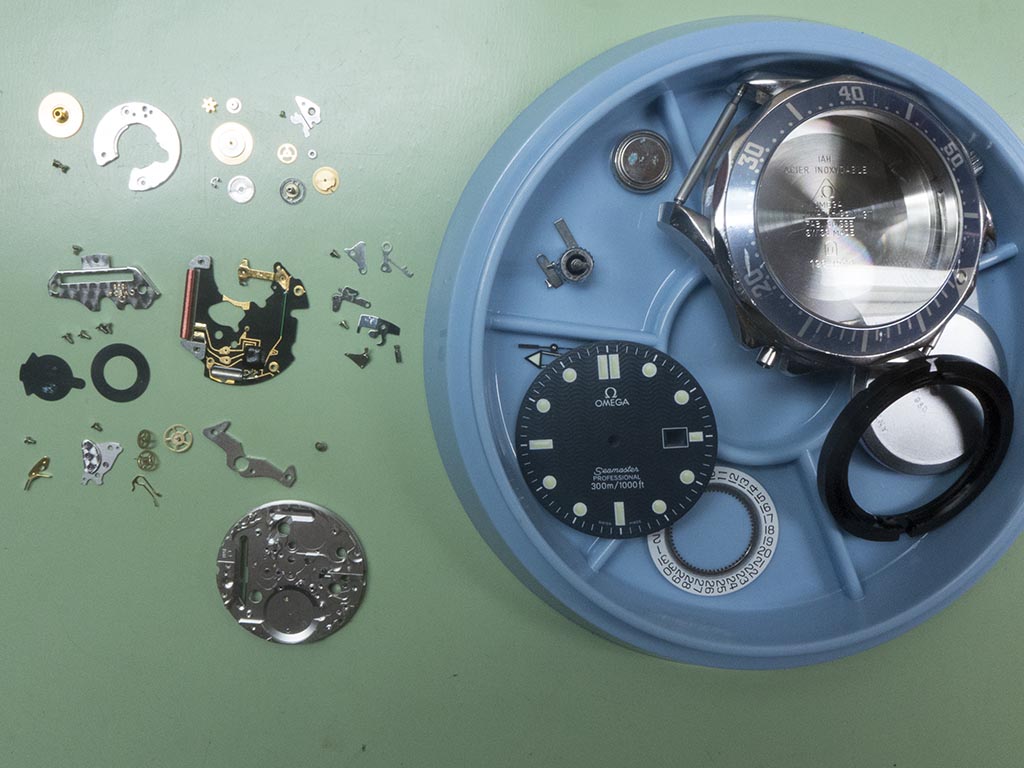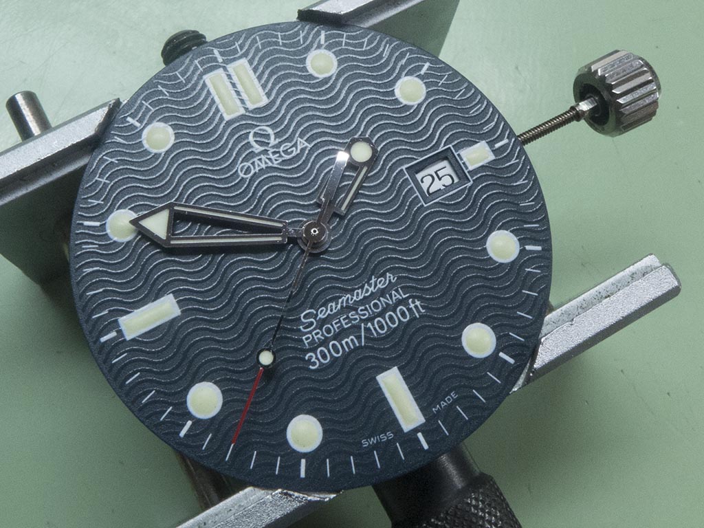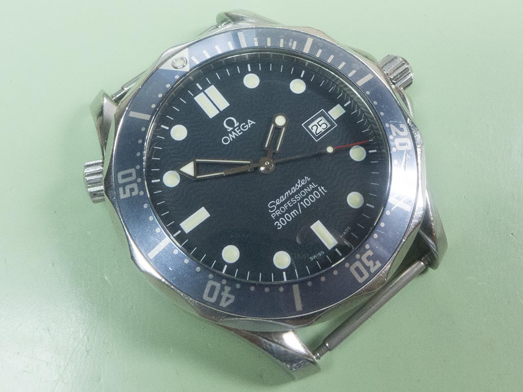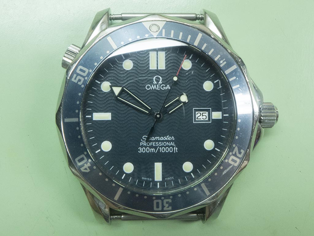 Omegas Seamaster Professional series of watches have been produced since 1993 but the Seamaster series was actually introduced in 1947, with that history behind them you can see they are a very popular watch with the non collector market as well as collectors. The SMP comes in many different variations including chronographs, GMT’s, divers and even an APNEA model with a unique timing function for the apnea free-diving breathing technique! In addition to this they come in a huge array of sizes from ladies models through to the 49.2mm Railmaster version, and many different limited editions versions celebrating their link with the Bond movies. This particular quartz powered model came in for a full movement service and basic pressure test.