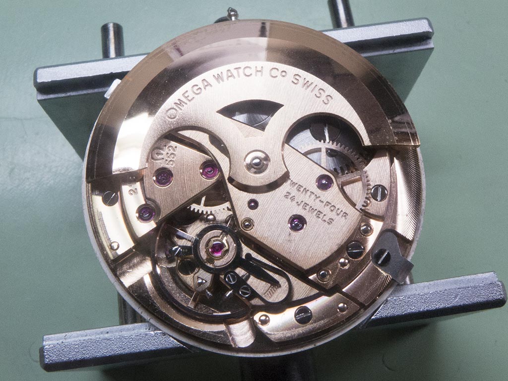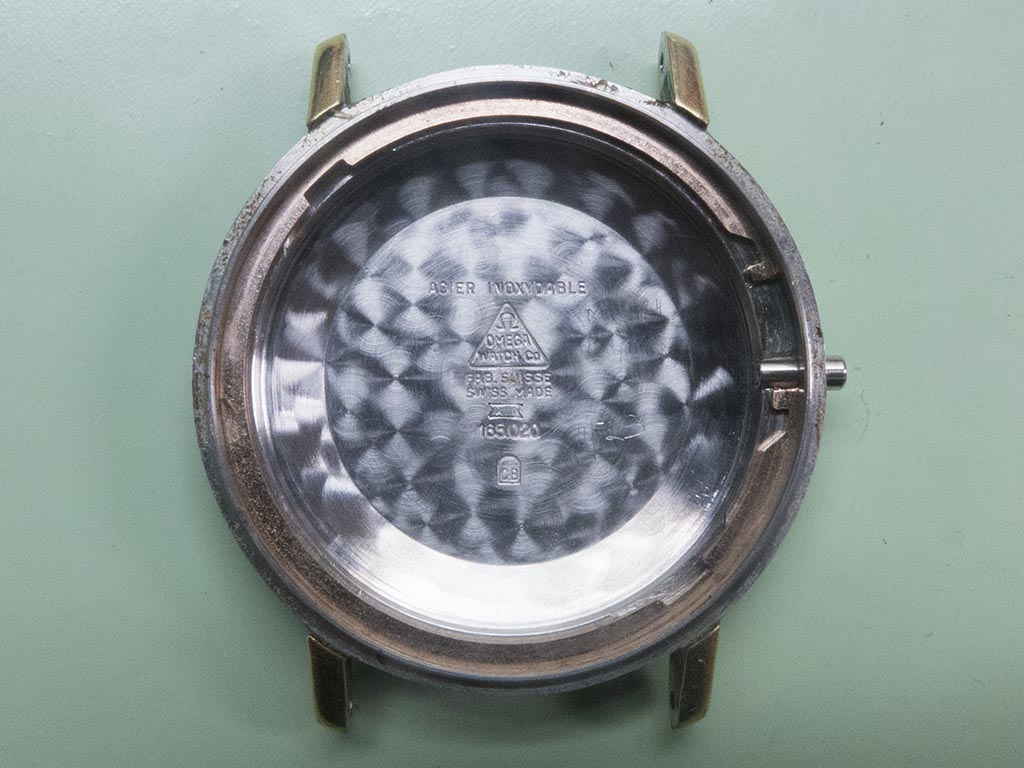 What makes this a little different from the ones I’ve featured previously is it’s a front loading case, meaning there’s no caseback to remove to access the movement, the crystal has to be removed and the movement withdrawn from the front. As can be seen this makes for an extremely clean look from the back, as usual it is emossed with Omegas hippocampus logo.