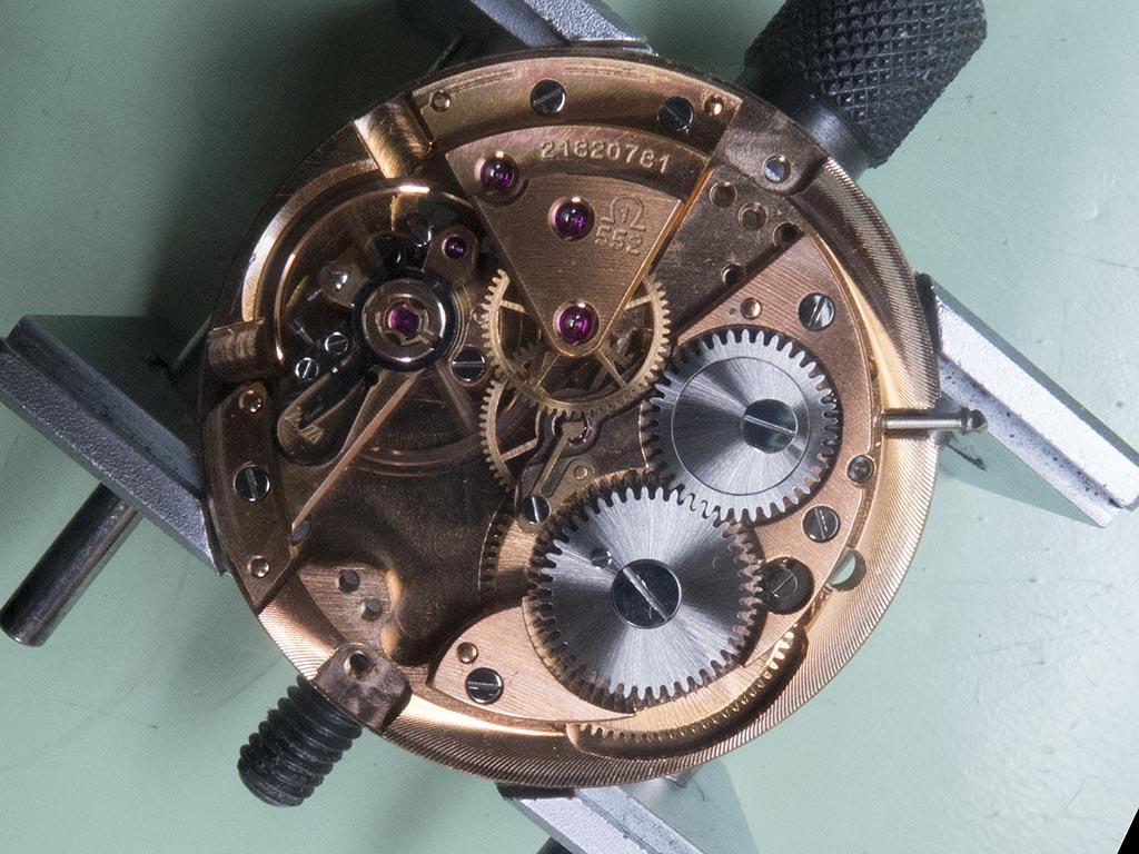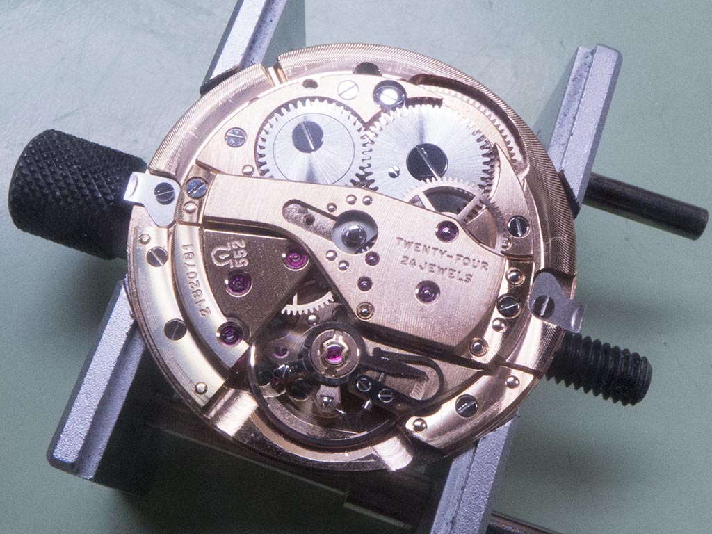 The calibre 552 movement itself is a beauty, it’s an automatic, 24 jewel, 19800bph, model with an indirect seconds drive and a lovely swan neck regulator.