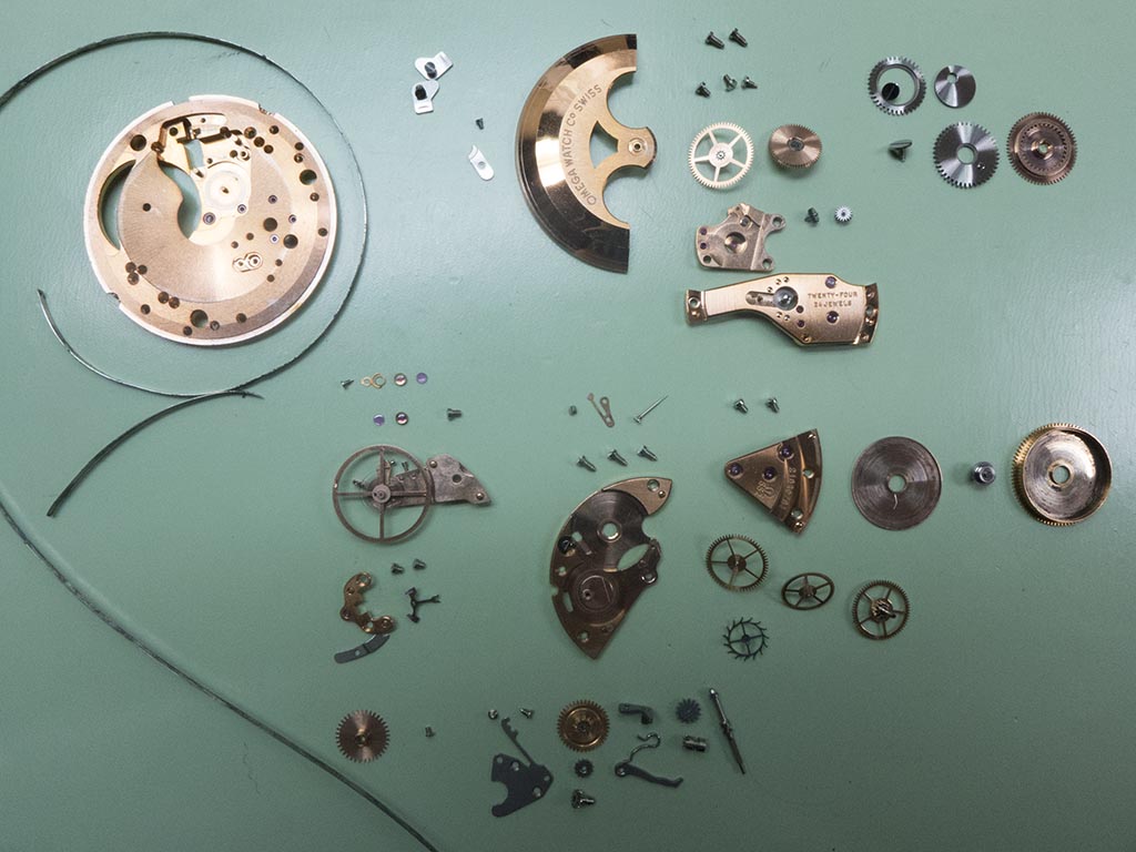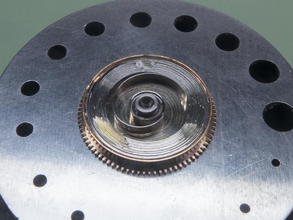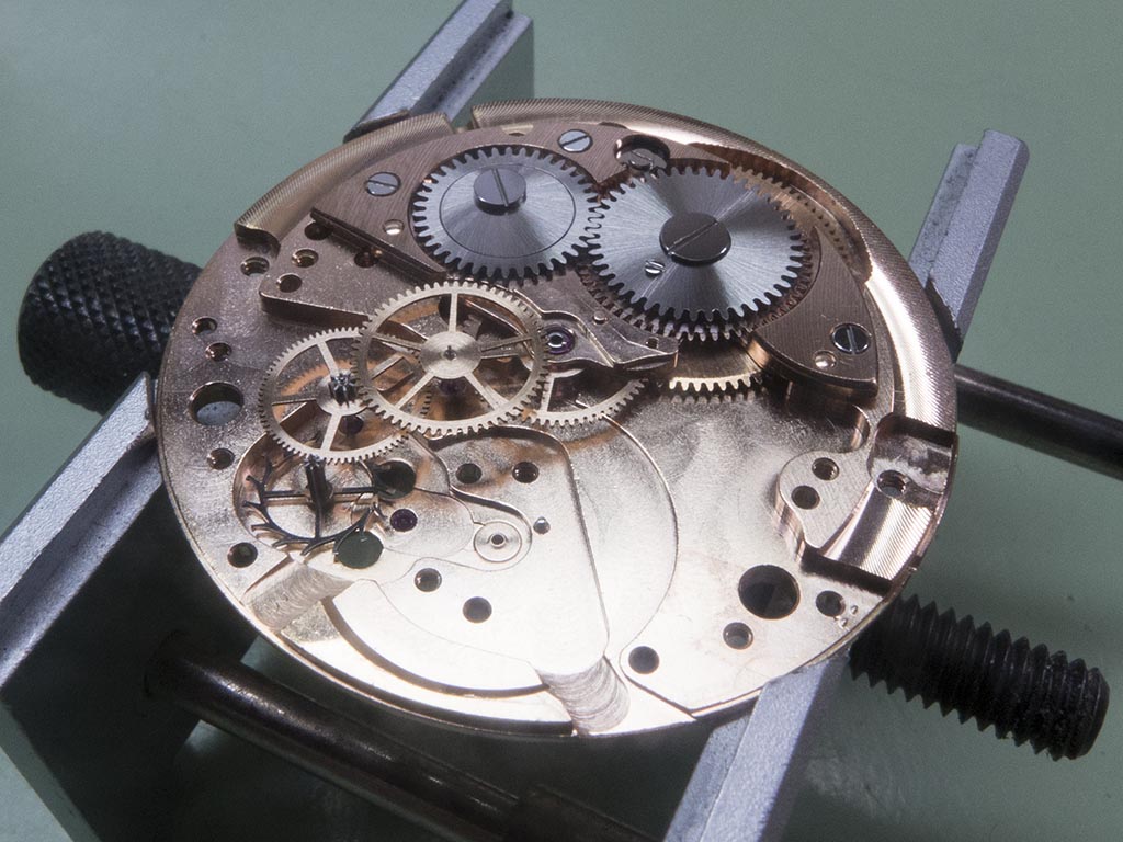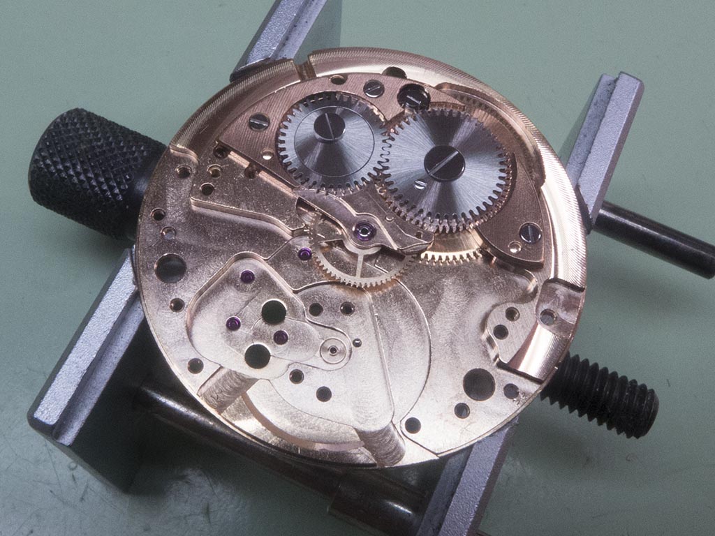 The third, fourth and escape wheels ready for the bridge to be fitted.