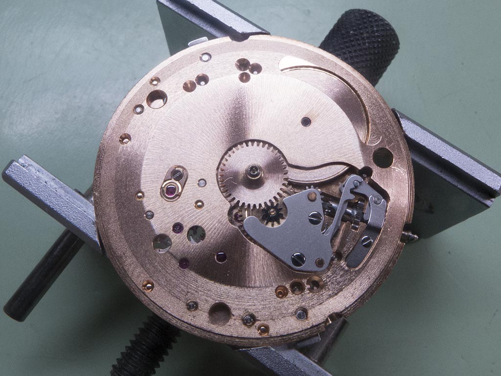 With the rotor and autowind bridge removed you can see the movements train a little more clearly.