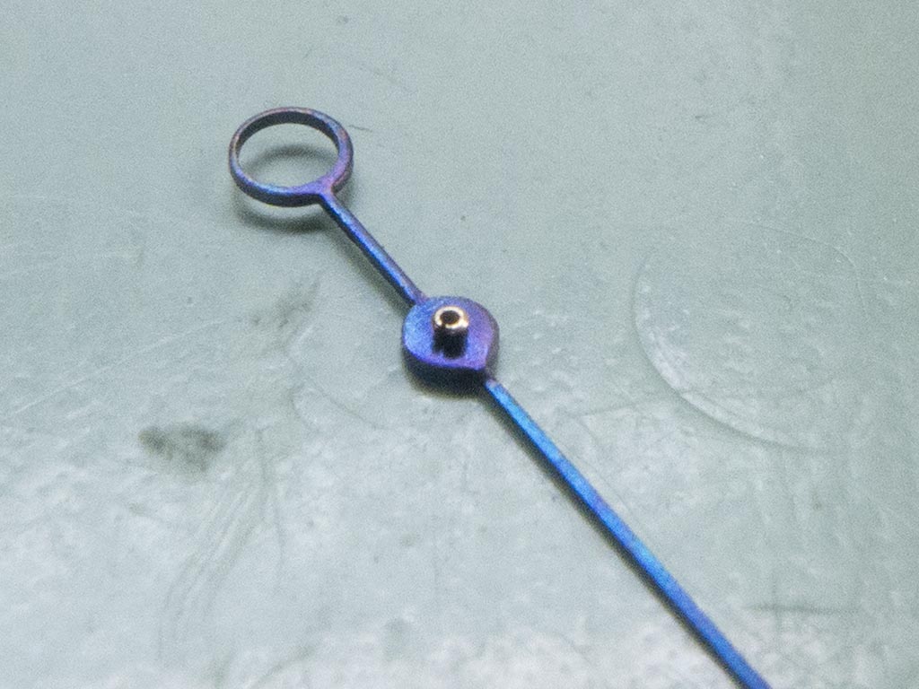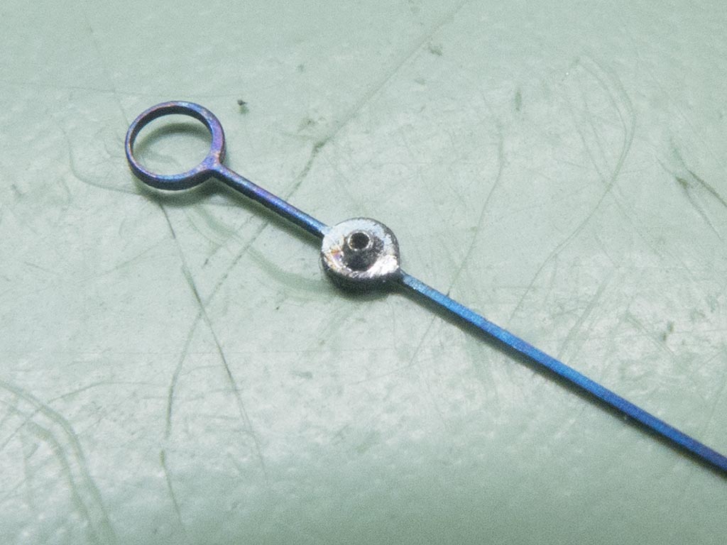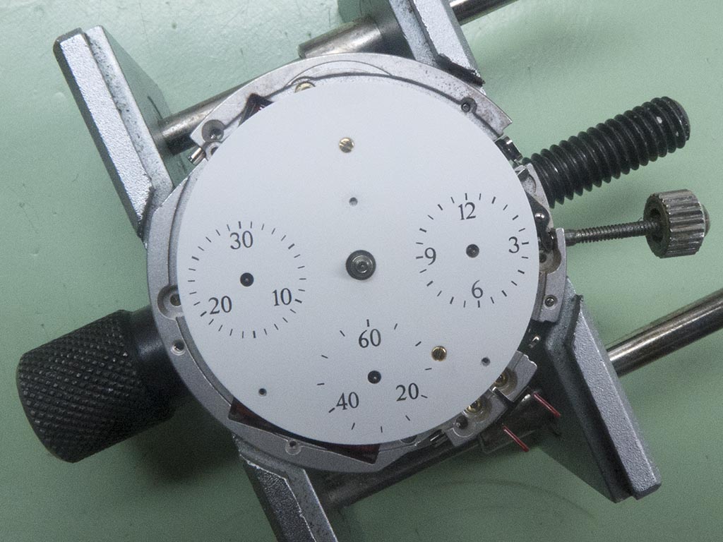 Then with a tiny 0.2mm drill I hand drill the solder out of the pipe. As I mentioned this procedure can help rescue a sweep hand on a normal watch but will it work on a chronograph?