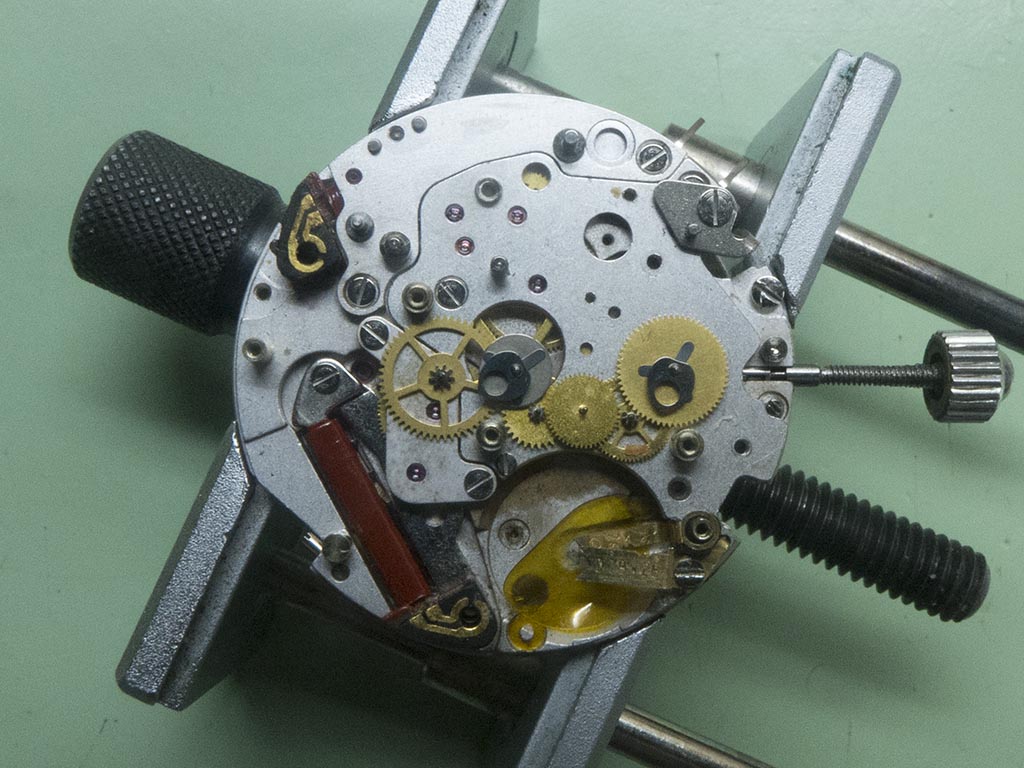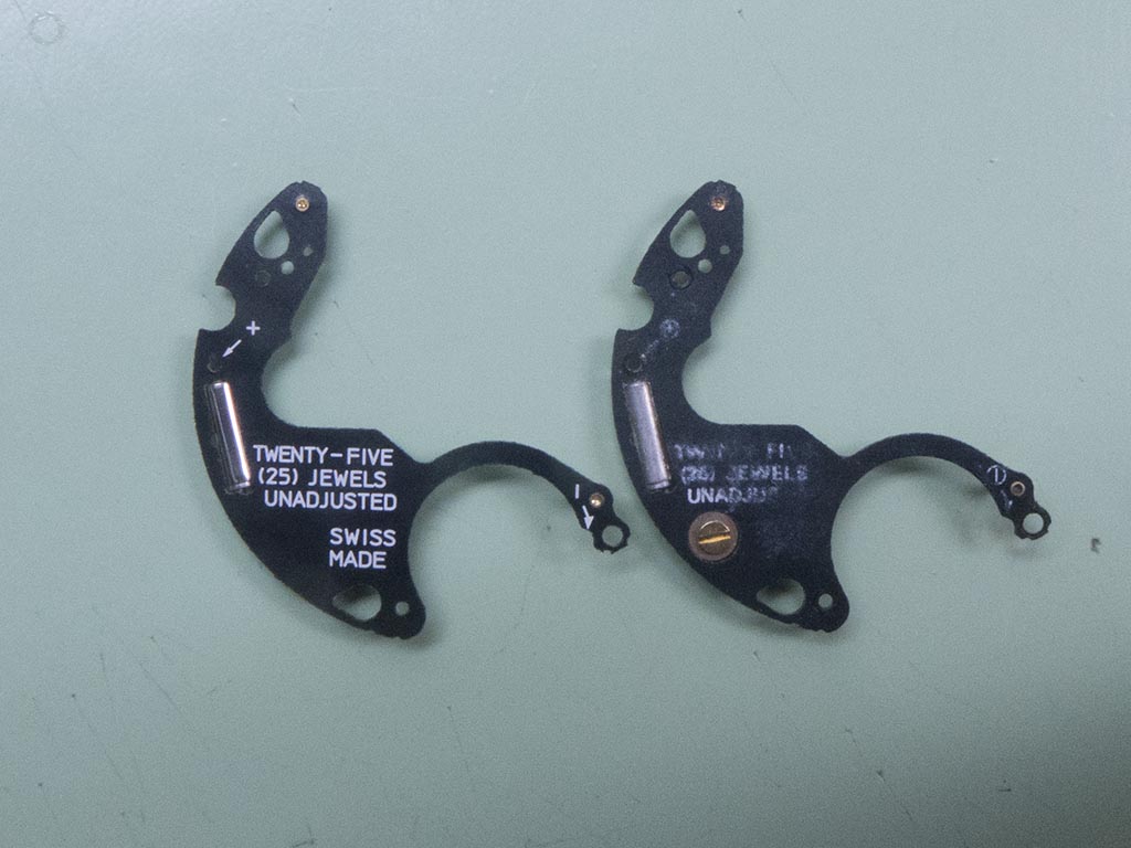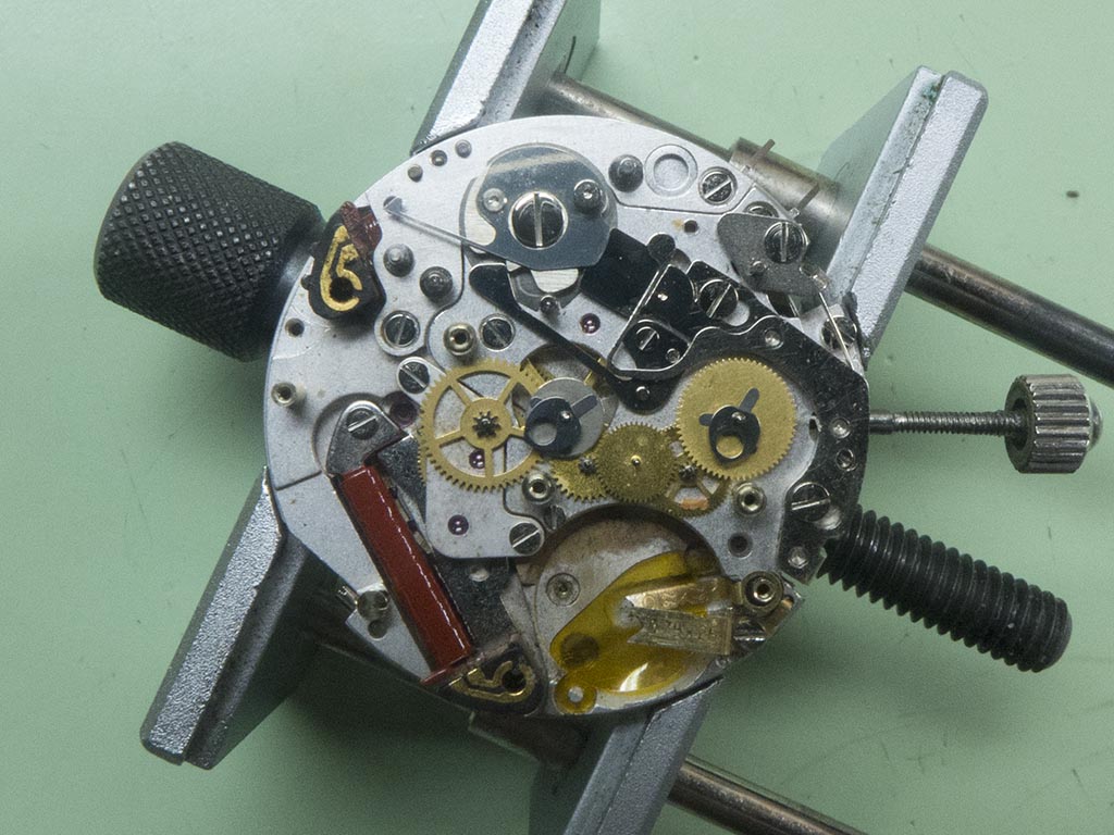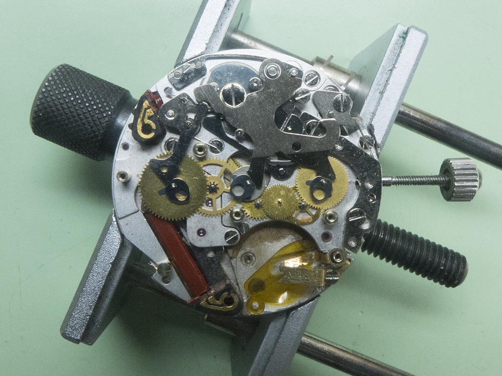 ….and this is the shape it should be. Hardly much difference between the two photographs but enough to prevent making and breaking the stop/start circuit. This is why I try to see the watch running before fully stripping as I’d probably have missed this, not knowing that the component had been slightly bent out of shape.