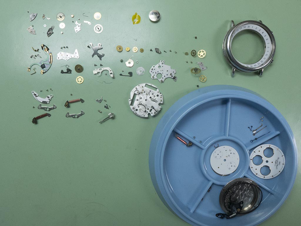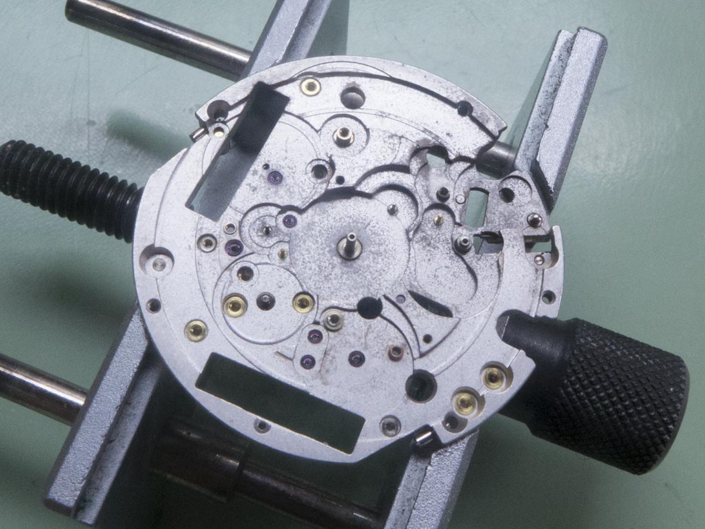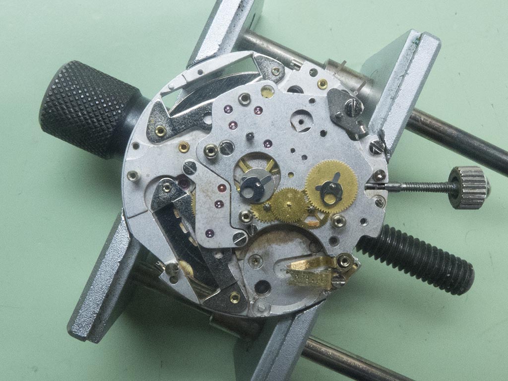 Once these arrived (after having gone missing for a while with the courier!) the project started again. The movement was removed from the case, being very wary of the date indicator poking out of the side.