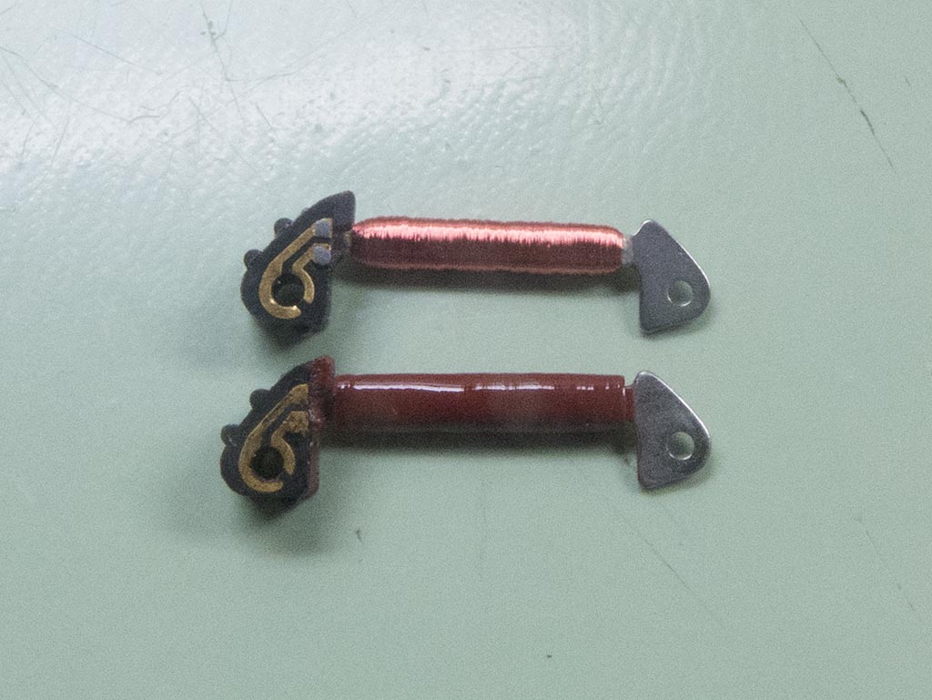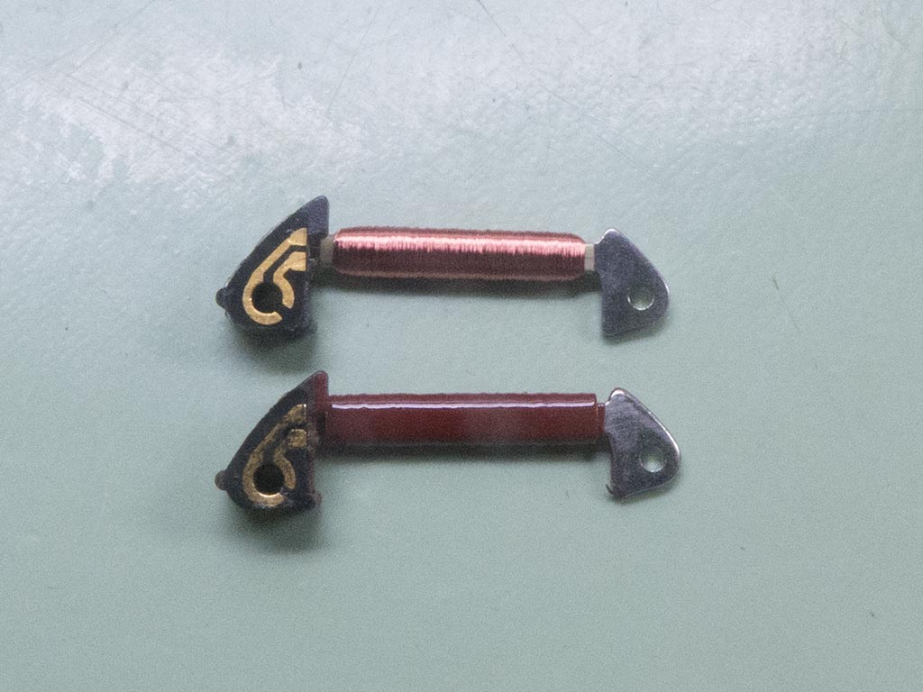 The new timekeeping coil with the old, as you can see the old has been coated with a sort of varnish to help prevent any damage to the fine wire the makes up the component.