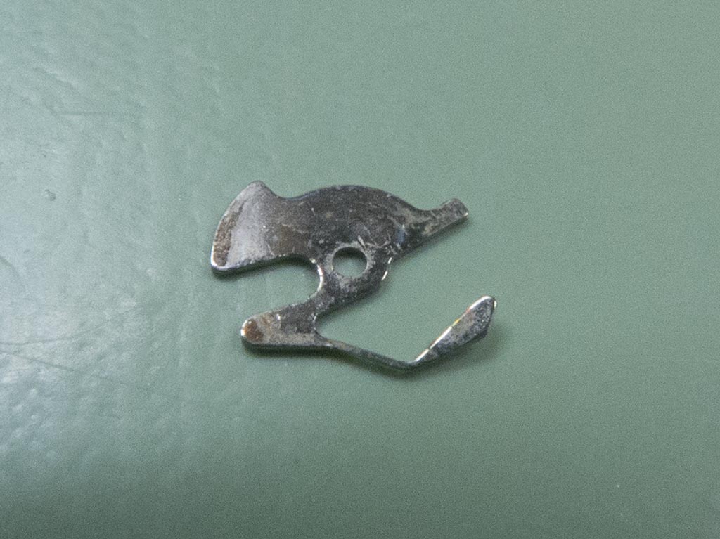 The issue with the non running of the movement was down to this little chap, the stop lever. This was the shape it was in….