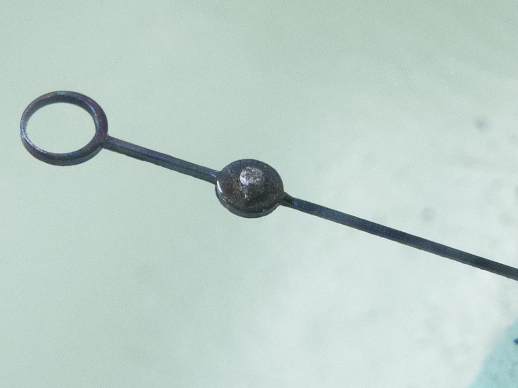 The coils were fitted, but when I went to fit the lever work the timekeeping coils cap appeared loose. I picked up the movement to inspect an it was apparent the cap wasn’t actually bonded to the plate. This was a big concern as the only thing keeping the cap attached was each end of the fine wire that is coiled around the plate. This wire is about a tenth of the thickness of a human hair and as such isn’t designed to take any load. I decided to gently remove the coil and bond the cap back on securely. However during the removal process the inevitable happened and one of the wire ends became detached from the contact on the cap. You can see where the metal plate has be scarified to provide a key, but no evidence of any adhesive!