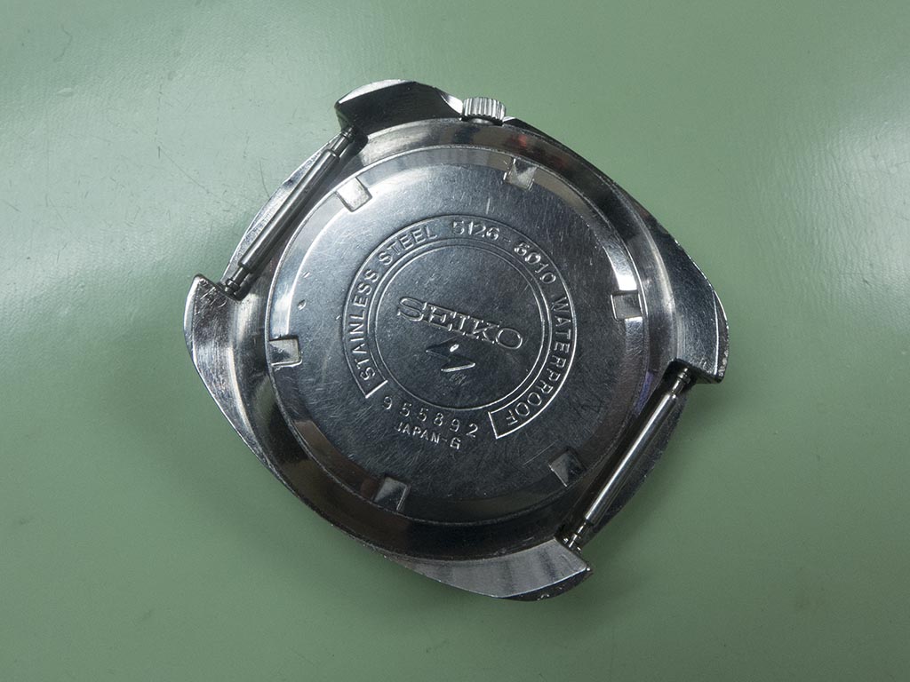 A peep inside shows the calibre 5126 movement, due to the rotor design it has shades of the 52 series of movements used in the LordMatic and King Seikos of the period.