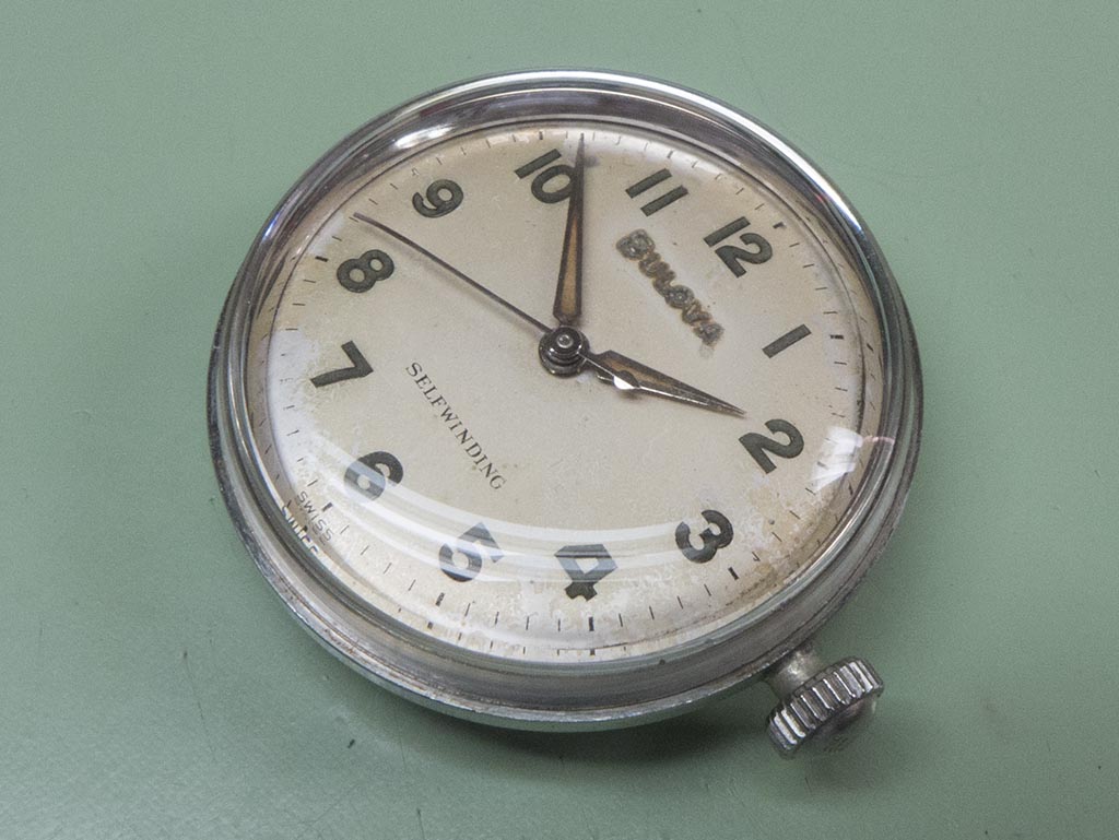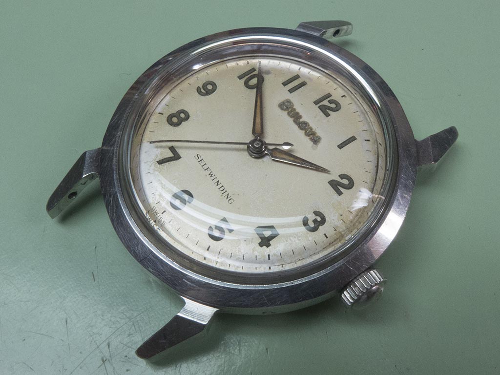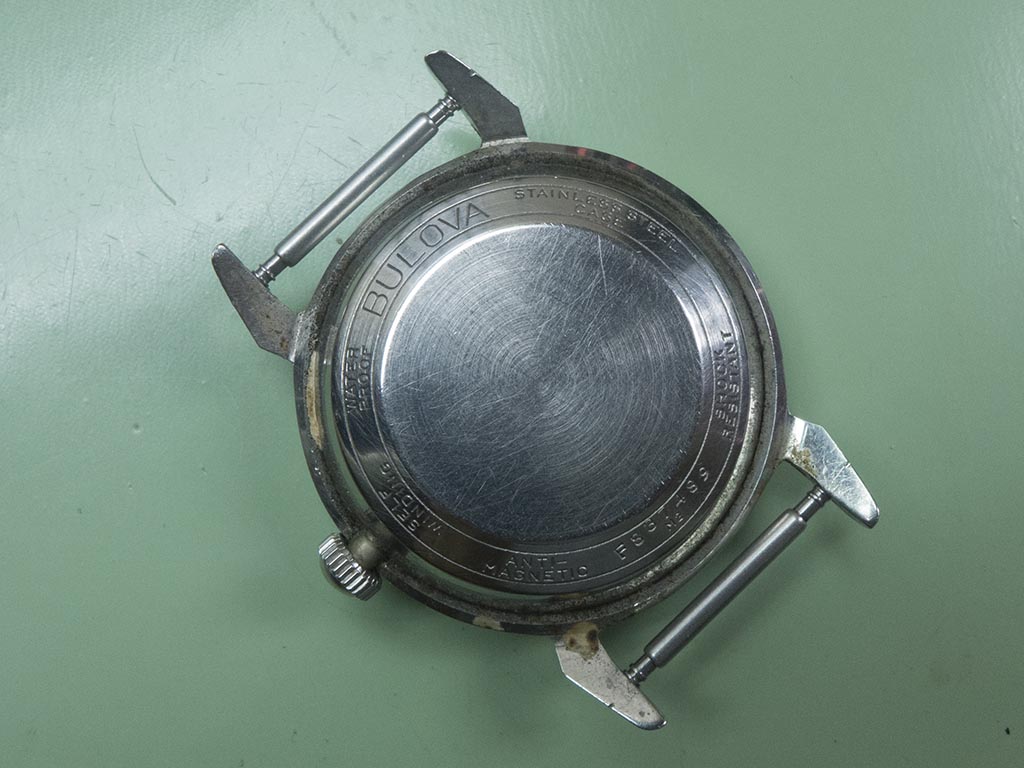 Bulova used an unusual case design on these little waterproof watches, if you look at the rear there appears to be no way of removing the caseback.