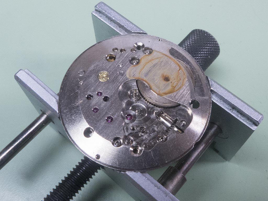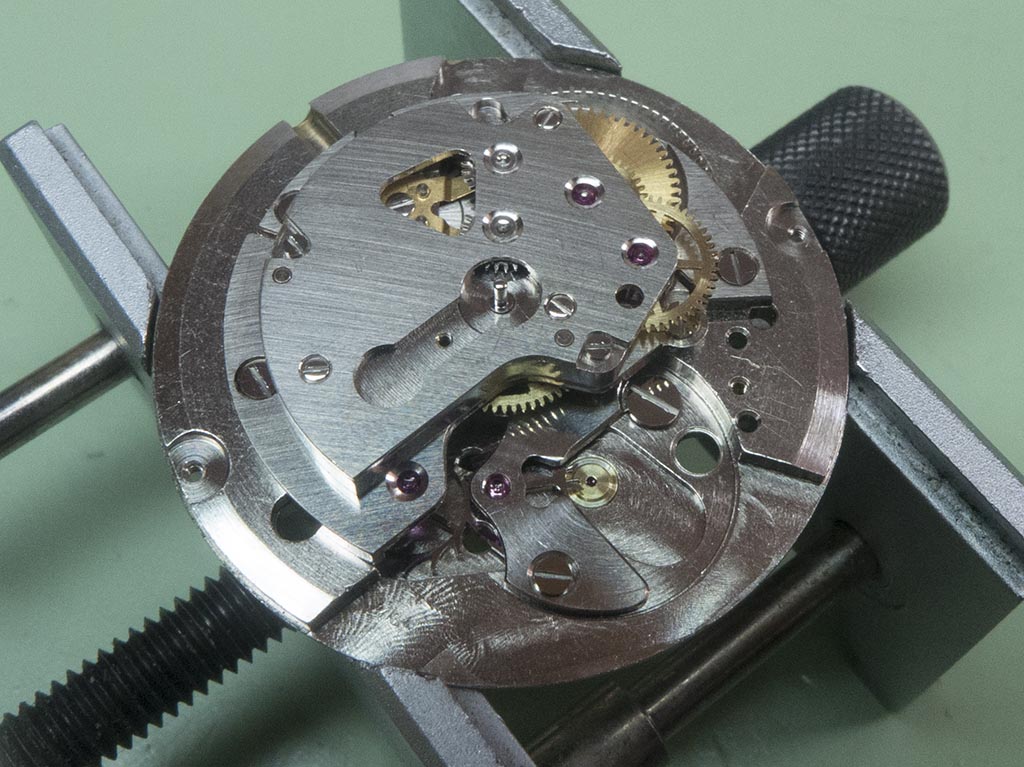 With the Rotor removed you get a clearer view of the movement with it’s weighted balance wheel.