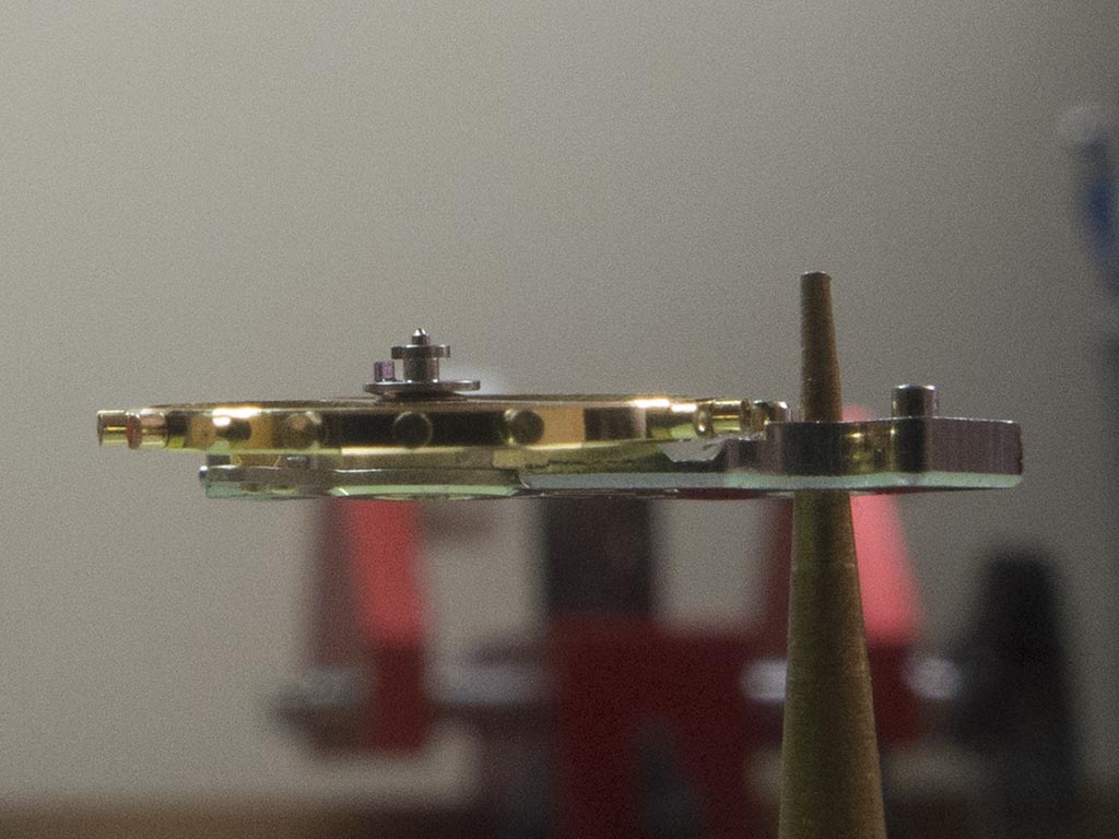 This means the watch won’t run as the impulse jewel won’t be in line with the pallet fork when it’s at rest, to remedy this the position of the stud has to be adjusted.