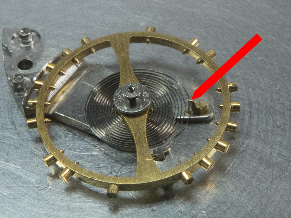 When fitting a new balance you have to ensure the stud on the hairspring is in the same position as the original, on this one it wasn’t.