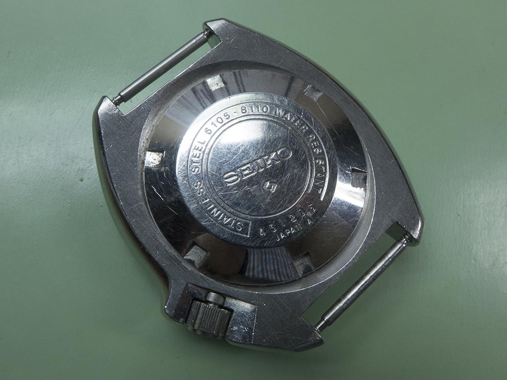 This must be one of the later horseshoe type caseback designs on the 6105-8110, they changed to a plain affair around about May 1974, possibly slightly later. I know by August the plainer casebacks were in production..