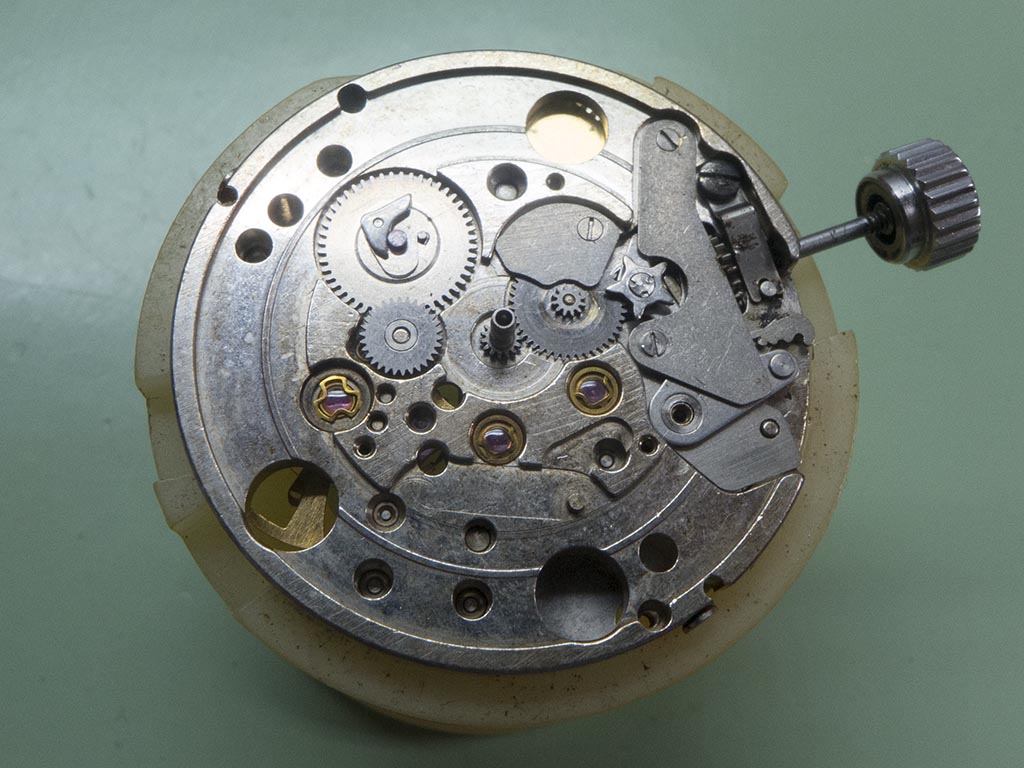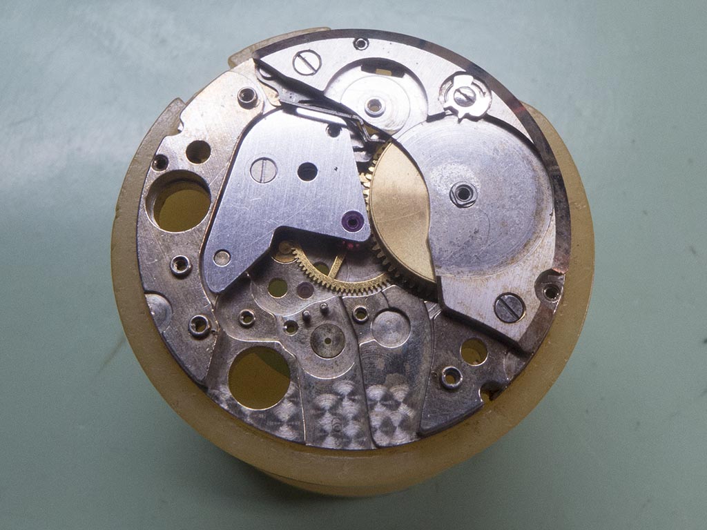 With the calendar side stripped the train side can be started, note the large diameter balance wheel.