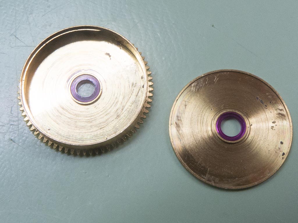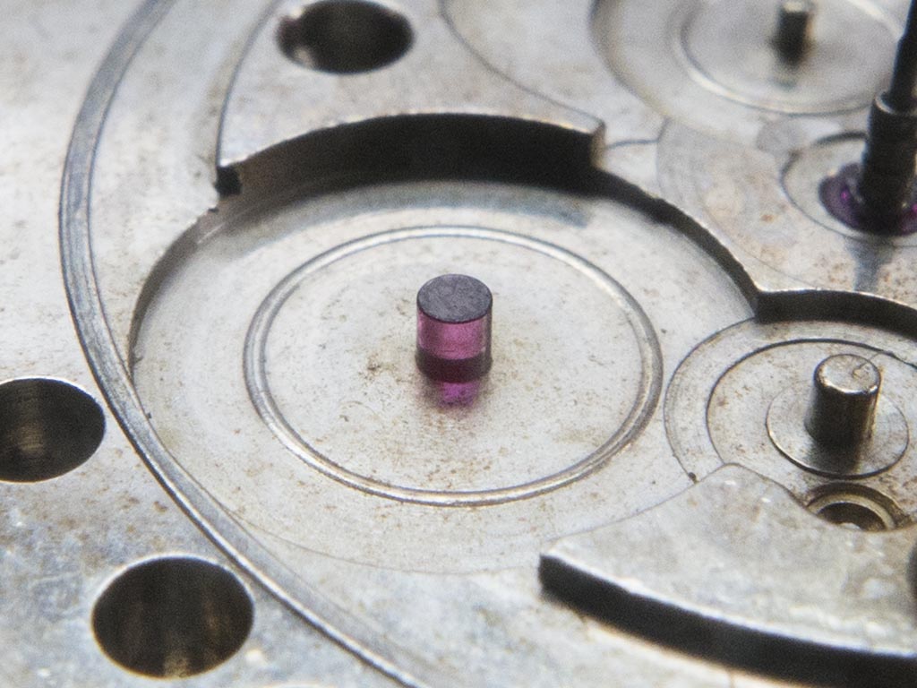 The amount of shock protection used in this calibre is probably over the top, there’s the usual diashock jewels on the top and bottom balance piviots, but there is also diafix shock protection on the upper and lower third and escape wheel pinions and on the lower fourth/seconds wheel pinion!