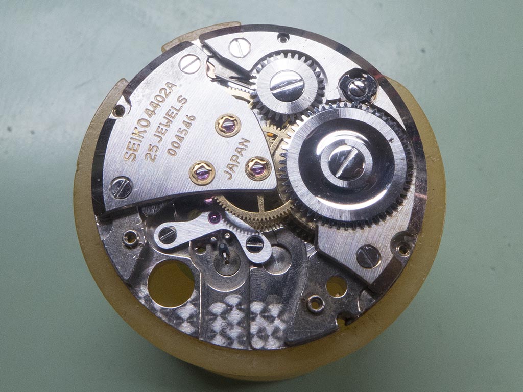 Back in 1968 during the last of the Chronometre competitions that were known as the “Accuracy Observatory Trials” at Neuchatel in Switzerland, the watches from Seiko were judged to have the most accurate mechanical calibres beating all entries from other manufactures. As well as entering competitions Seiko manufactured some astonishingly accurate watches for general sale during those days under their Grand Seiko and King Seiko lines, these were labelled (depending on the line) as Very Fine Adjusted (VFA), Superior Chronometer or just Chronometer. As accurate as these were even their “plain” (if such a term can be used) calibers were remarkable timekeepers. One of the big drivers behind all this increasing accuracy was that Seiko had two manufacturing plants, Suwa and Daini, that were set up in competition with each other to try and push the boundaries of technical and manufacturing development. The example featured in this article is a King Seiko 4402-8000 manufactured in May 1968, right at the time Seiko was winning the Chronometre competitions and striving to make the most accurate watches they could. The watch is powered by the calibre 4402a which is a hand wind, hacking, 25 jewel, 18,000bph movement. It’s a fabulous example which appears to be on it’s original stainless steel bracelet, again which is in fabulous condition.