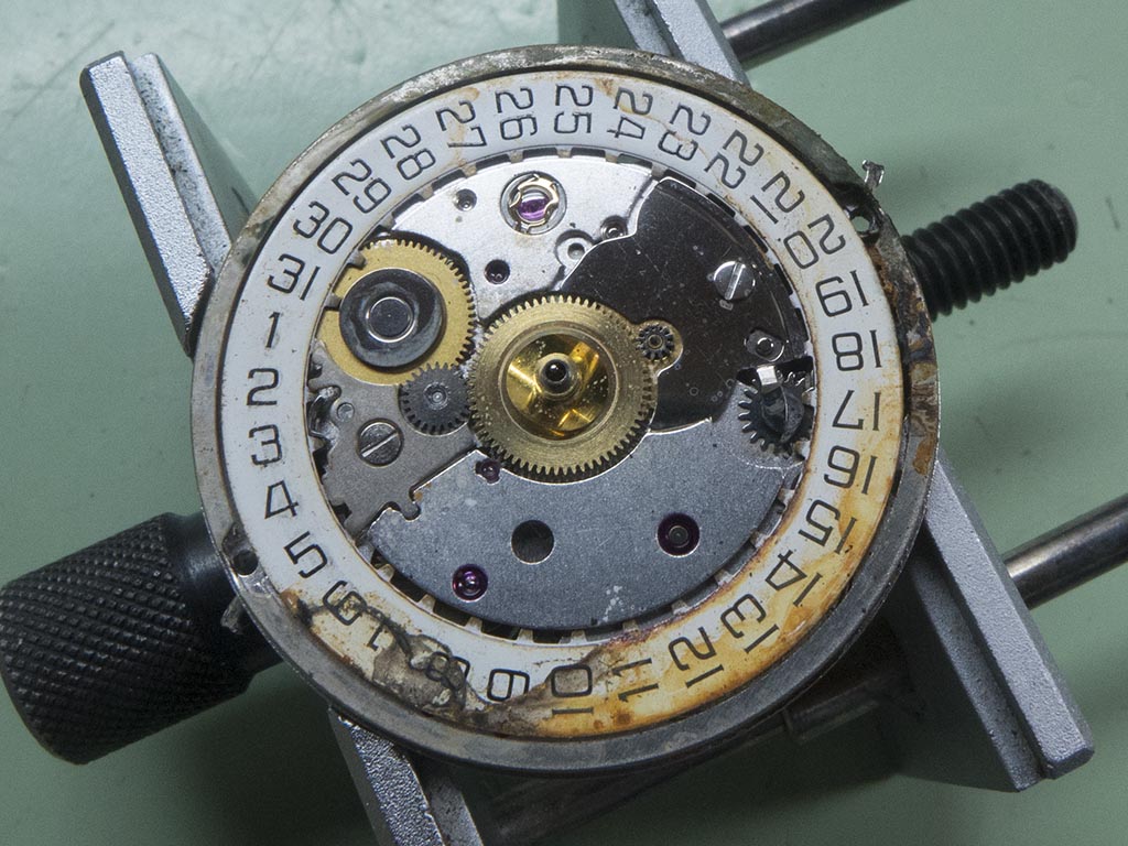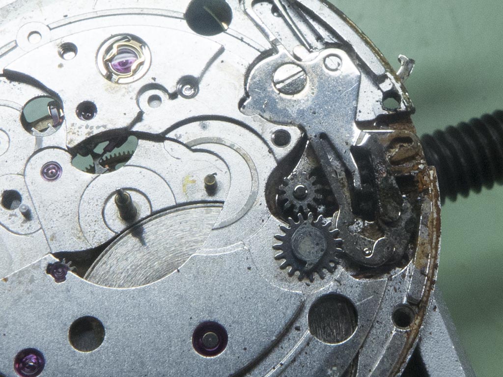 With the movement spacer removed it gets worse, the dreaded rust is now making it’s presence known!