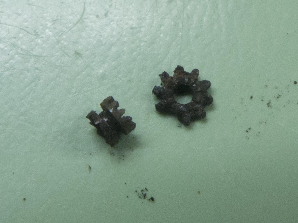This is what was left of the winding pinion and clutch, the pinion was so corroded one of the teeth had rotted away.