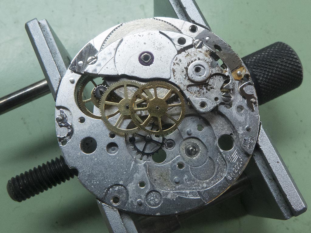 Even the movement didn’t look too bad through the display caseback, however the first warning of problems were that the hands were seized solid, the rotor didn’t turn and when I pulled the crown to try and put it into the time setting position it came completely out!