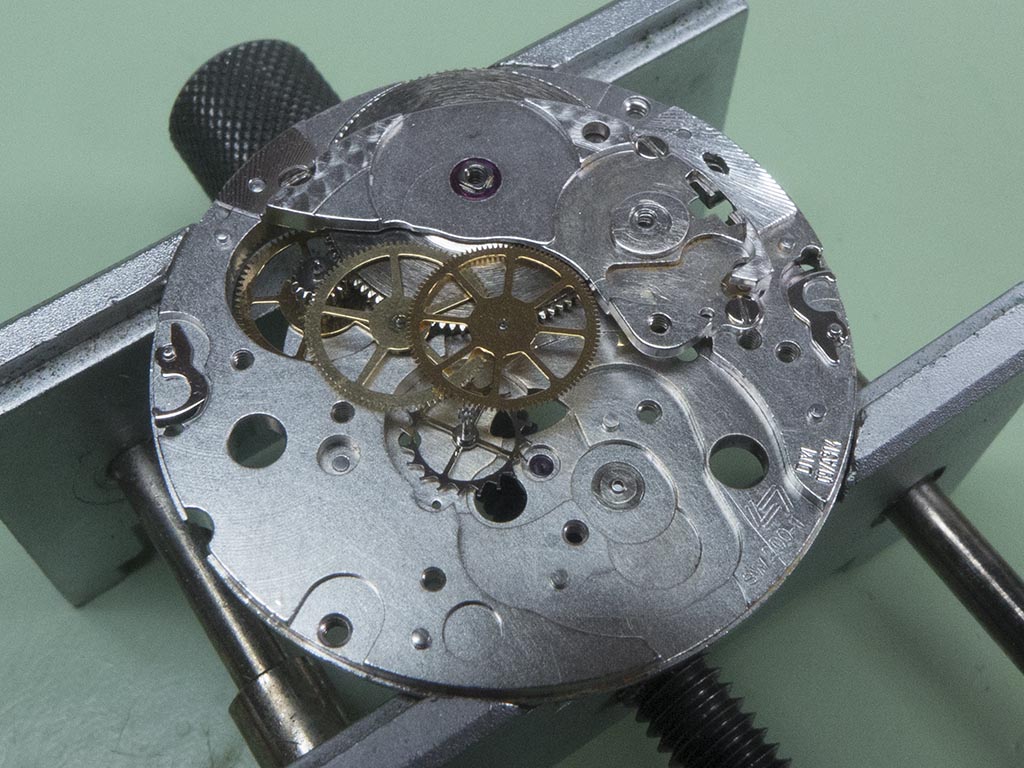 However, the movement had one final twist in store. I recased it and went to fit the rotor, as I tightened it the post sheared off the plate! I think the fact the rotor was siezed must have put undue strain on the post and weakened it, the saving grace was it wasn’t tight when it sheared which allowed me to remove the screw and post from the rotor without too much trouble. Once again everything went on hold whilst a new plate was ordered.