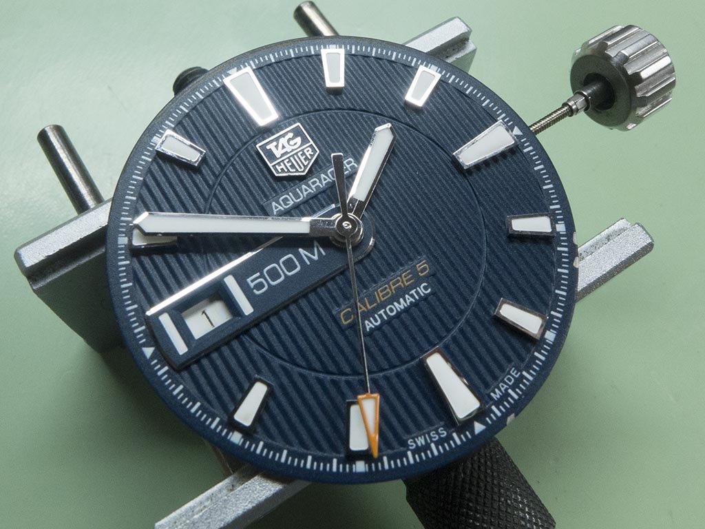 Never mind wherever it originated from it had ruined the date ring. Ordinarily this wouldn’t be a problem as a new date ring could be bought, but the date at 9 o’clock configuration of this watch means the ring is a unique Tag part.