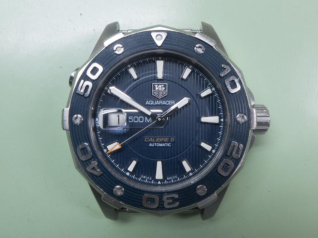This Aquaracer came in recently described as “not working as it got wet, it looks clean inside though”. At first glance it looks in remarkably good shape considering it got waterlogged.