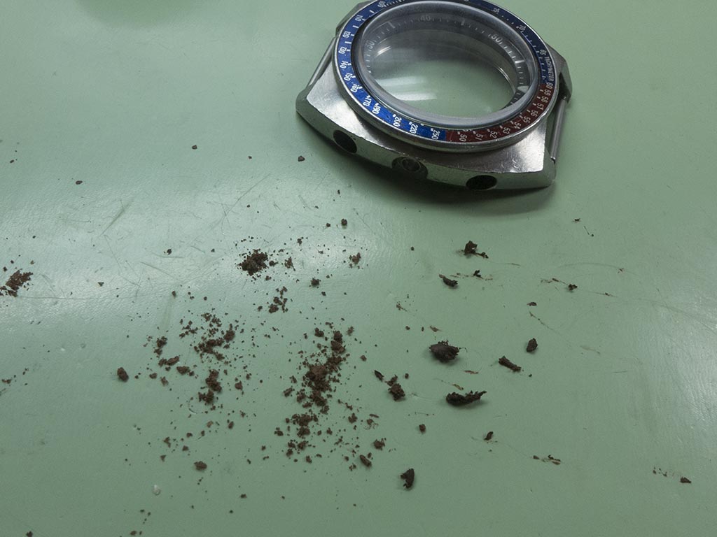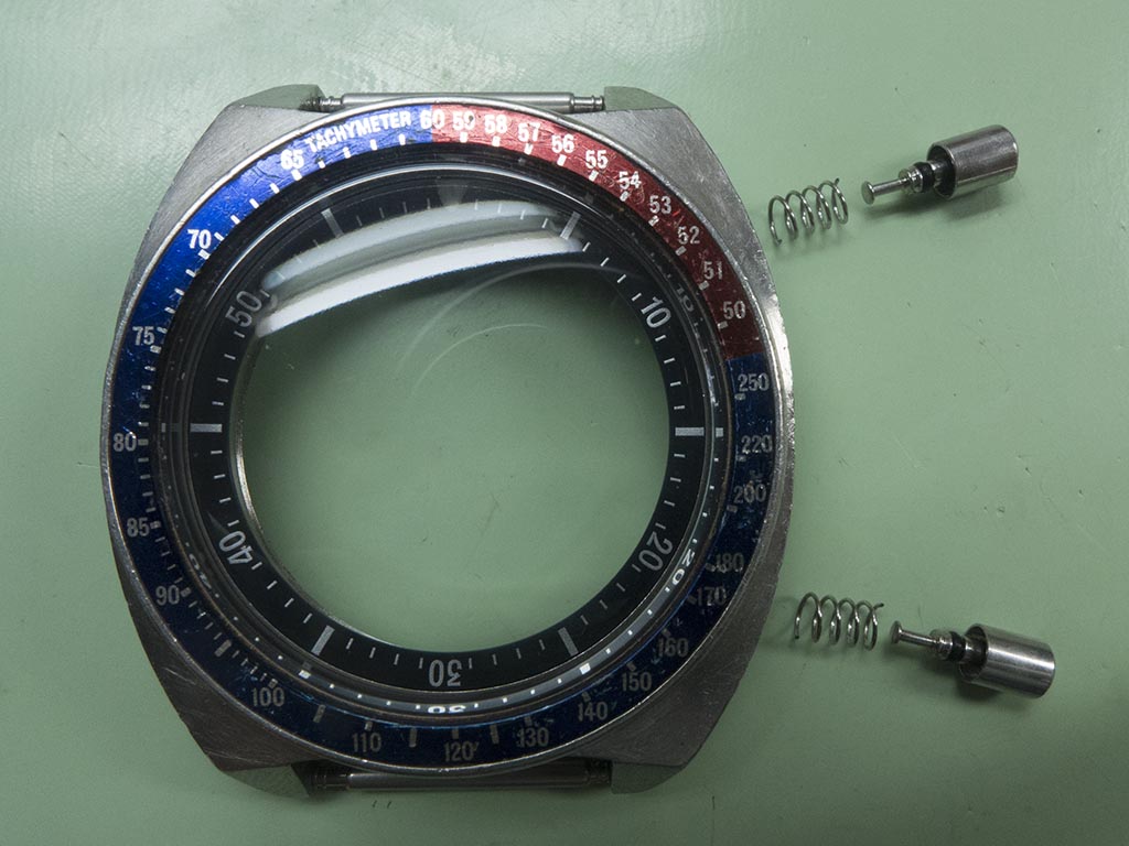 The case, pushers and springs were soon cleaned up and a new set of seals were fitted
