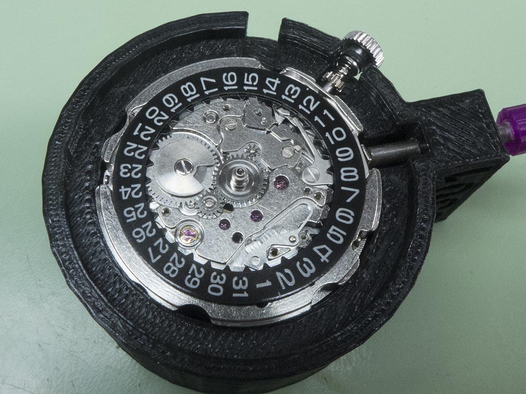 With the dial and hand removed the day/date rings are now visible.