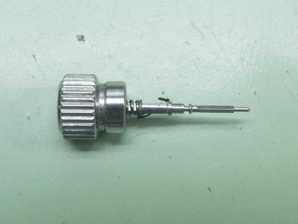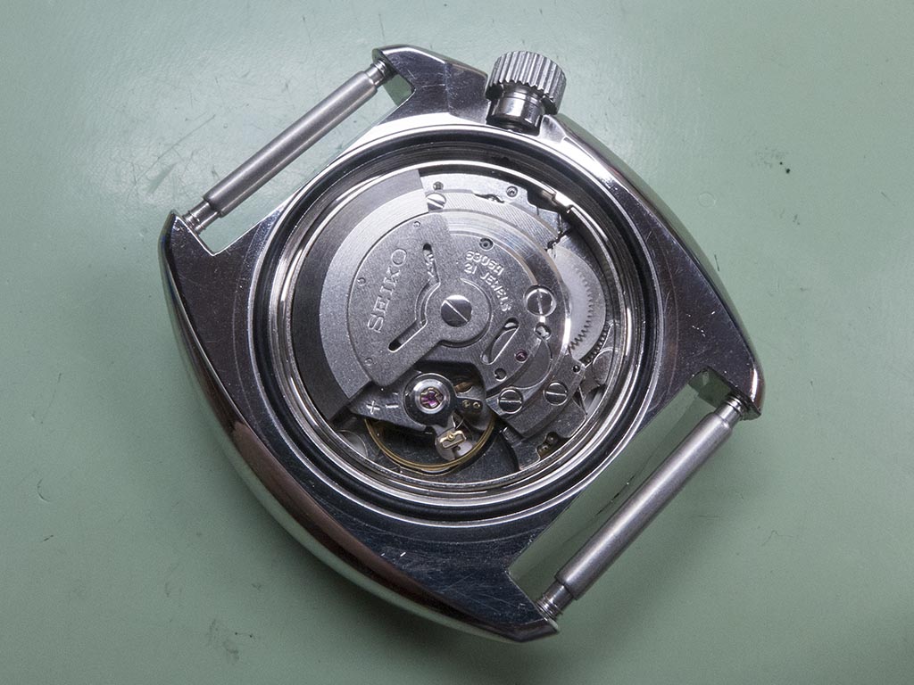 One of the beauties of the 6306 and 6309 divers is that as long as the case components and seals are in good condition they can be made water resistant once more. The usual failure point is the crown seal, here you can see where the original seal has started to break up and deposit shards of rubber on the stem.