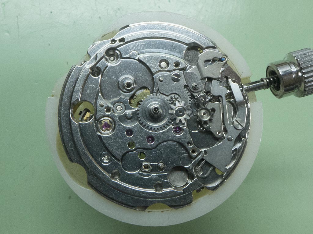 Here the movement has been recased, there’s also a fresh case seal ready for the caseback to be fitted.