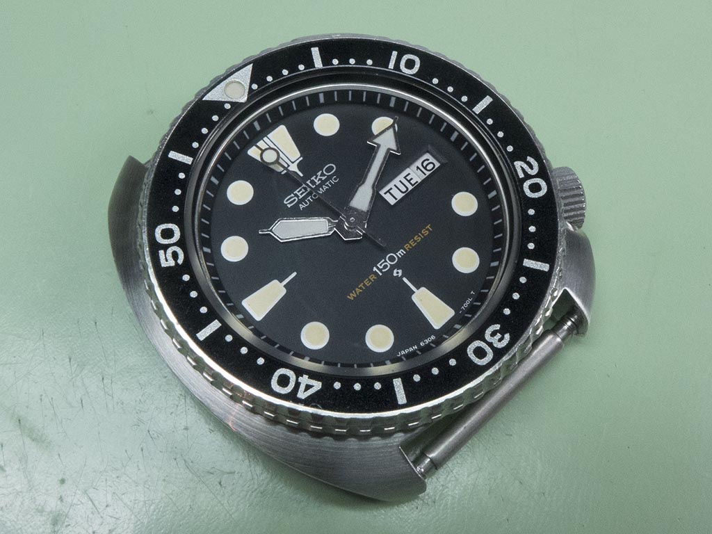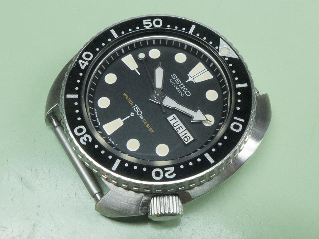 The caseback shows it was manufactured in August 1976 which is a very early example of this model, this is reinforced by the large splines on the crown, the splines became finer later on in production. Also note the frosted background to the tsunami logo, you usually see this background detail polished smooth through wear.