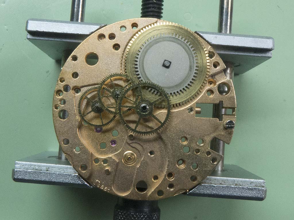 The wheel train was then refitted and tested, there’s no point building up the chrono layer if there’s a problem with the motion work!