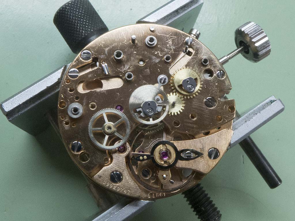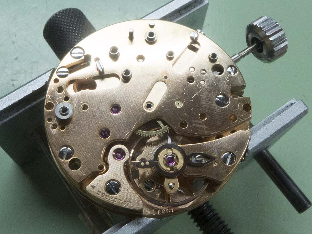 New legs were soldered into position, the positioning is acutely critical, especially with a chronograph dial.