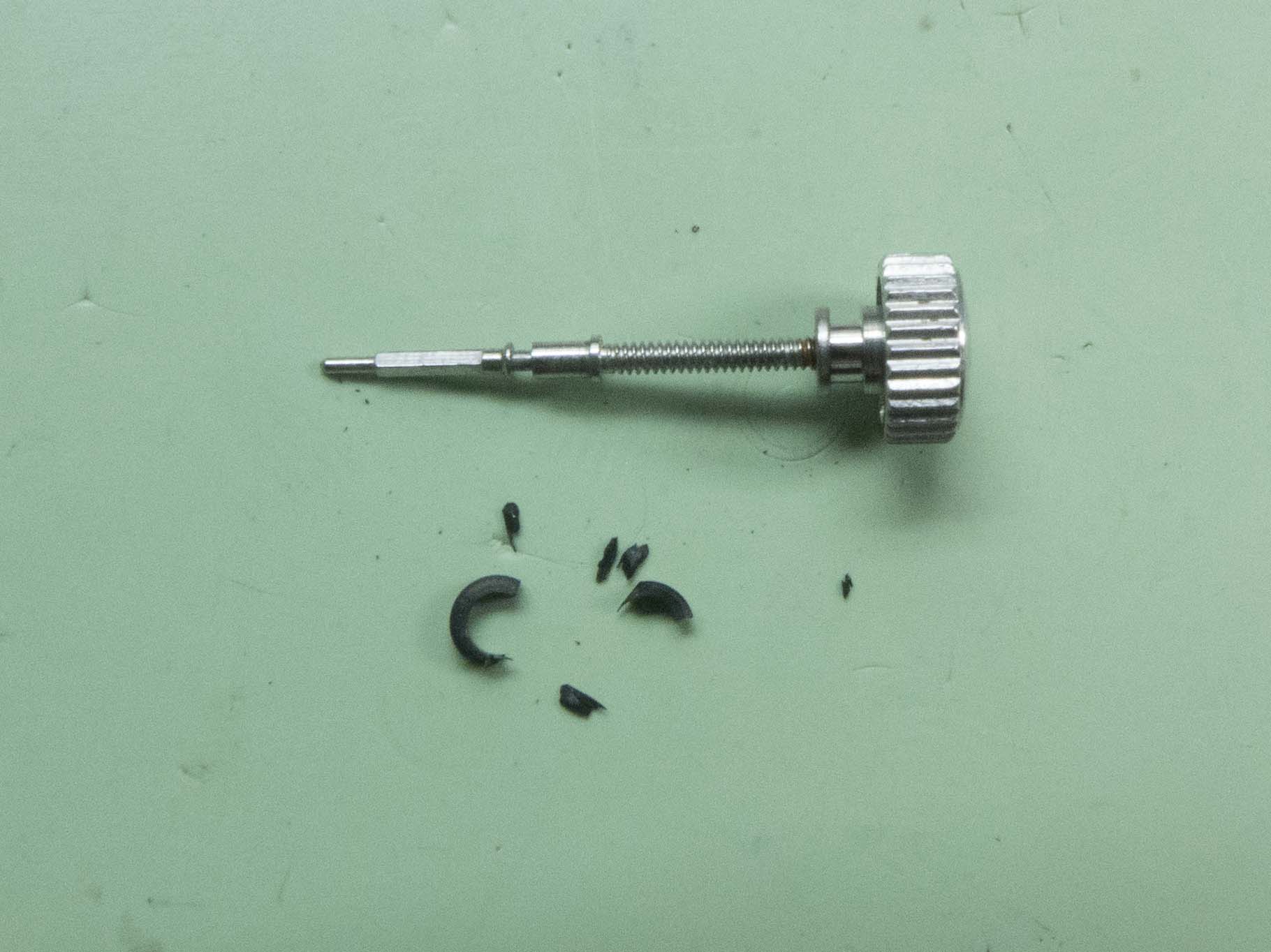 The pushers and crown’s seals look at first glance to be fine but with watches of this age they rarely are. These had become so brittle they had to be broken off.