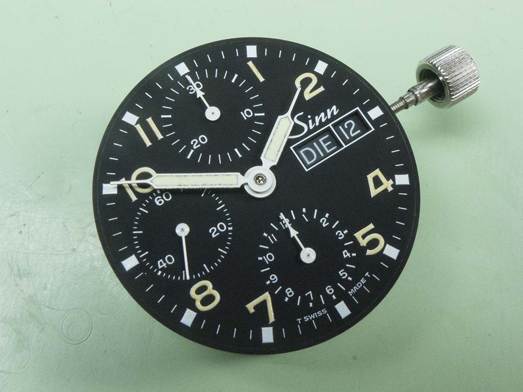 Dial and hands back on, a bit fiddly when you can’t find your Valjoux movement holder! Just the main chrono sweep to go back on now.