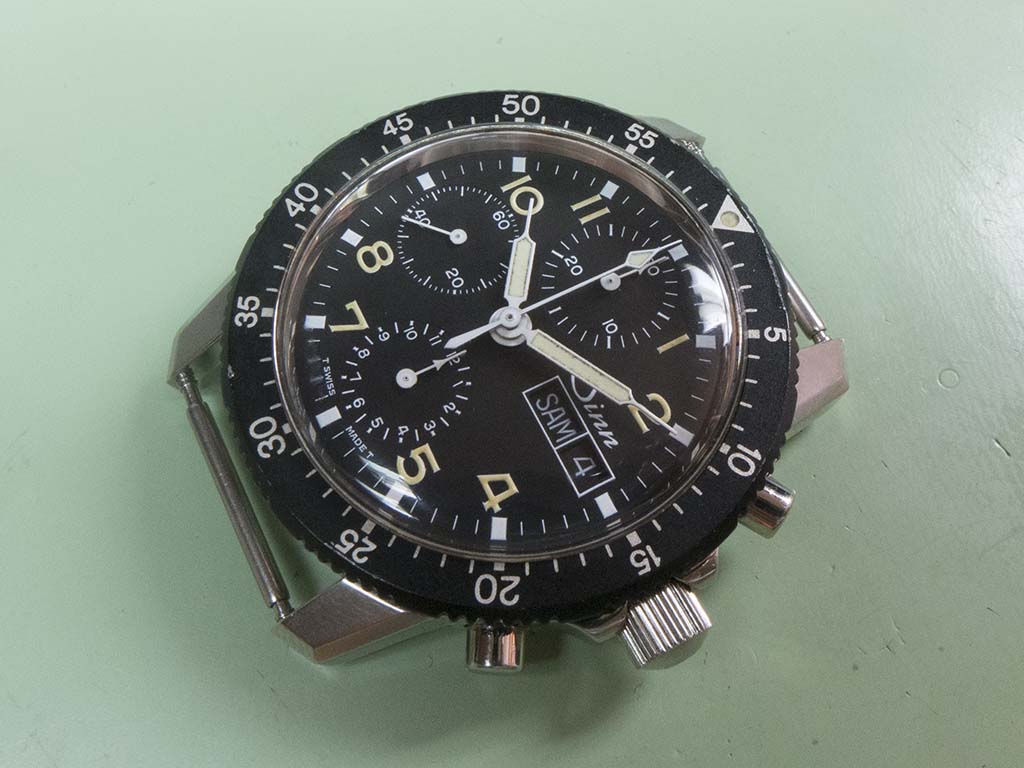 This Sinn 103 chronograph came in for a problem with the crown to be sorted, only a small job really but as you don’t see these very often and it’s such a gorgeous Bundeswher type chronograph it would be a sinn not to show it (geddit?)!